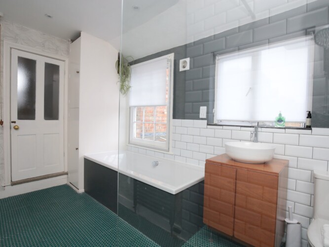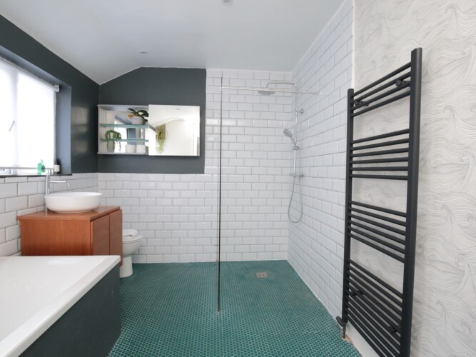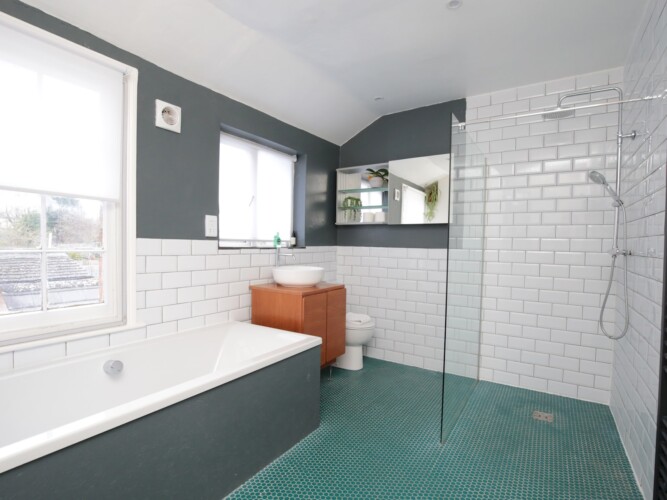 Bathroom 1: Bathtub, Walk-In Shower, WC & Basin / First Floor