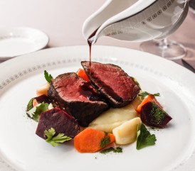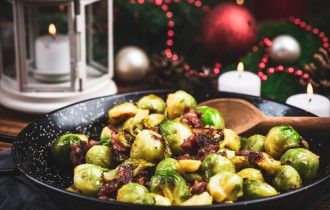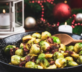 Seasonal foods including mulled wine, roasted chestnuts, and festive treats