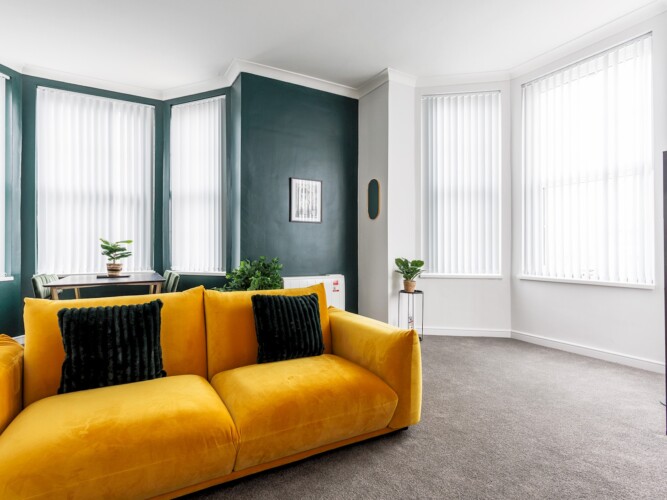 The spacious living room offers a comfortable sofa, making it a great place to relax after a long day. With a Smart TV available, you can easily stay connected to your favourite streaming services, so you won’t miss out on any shows or movies.