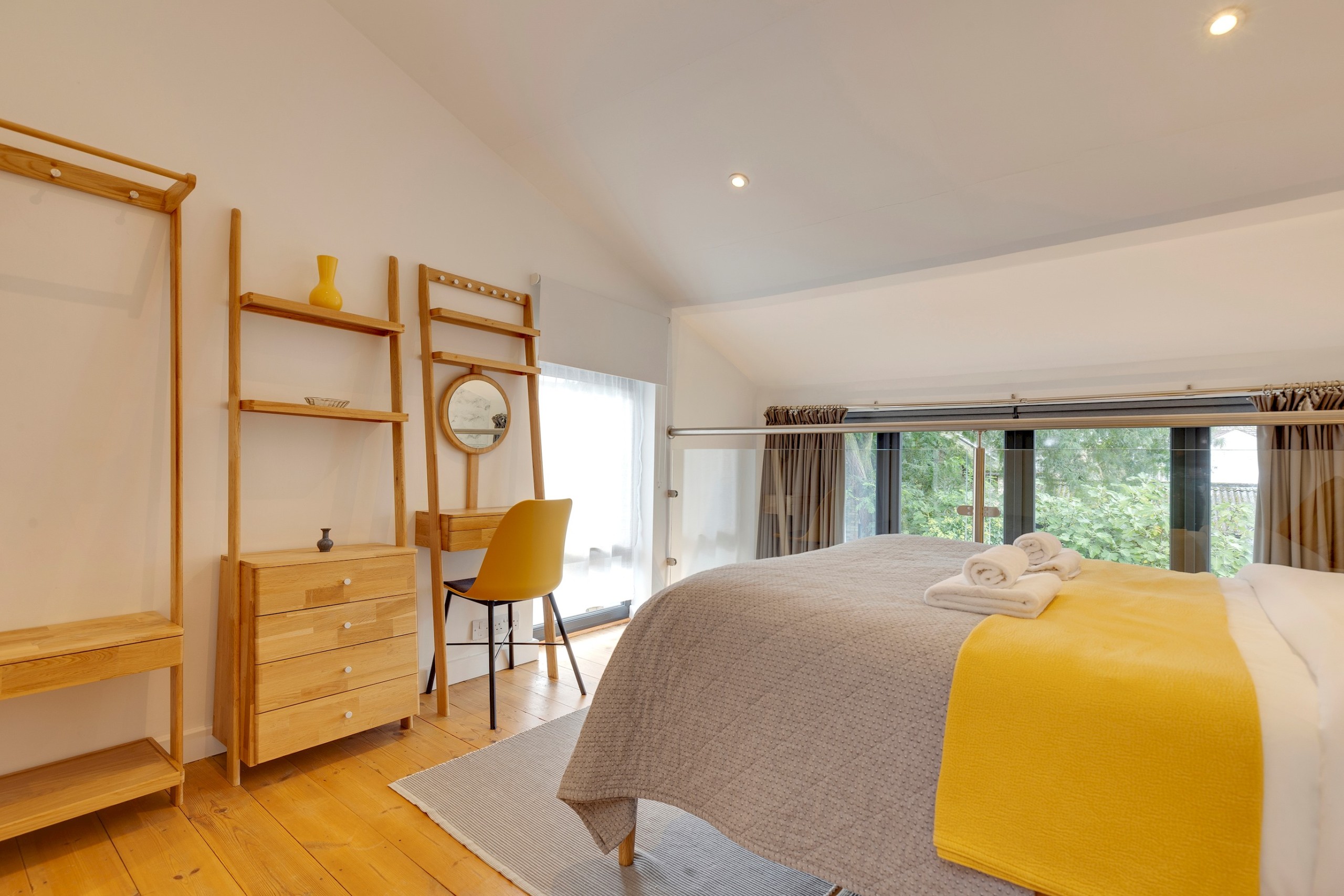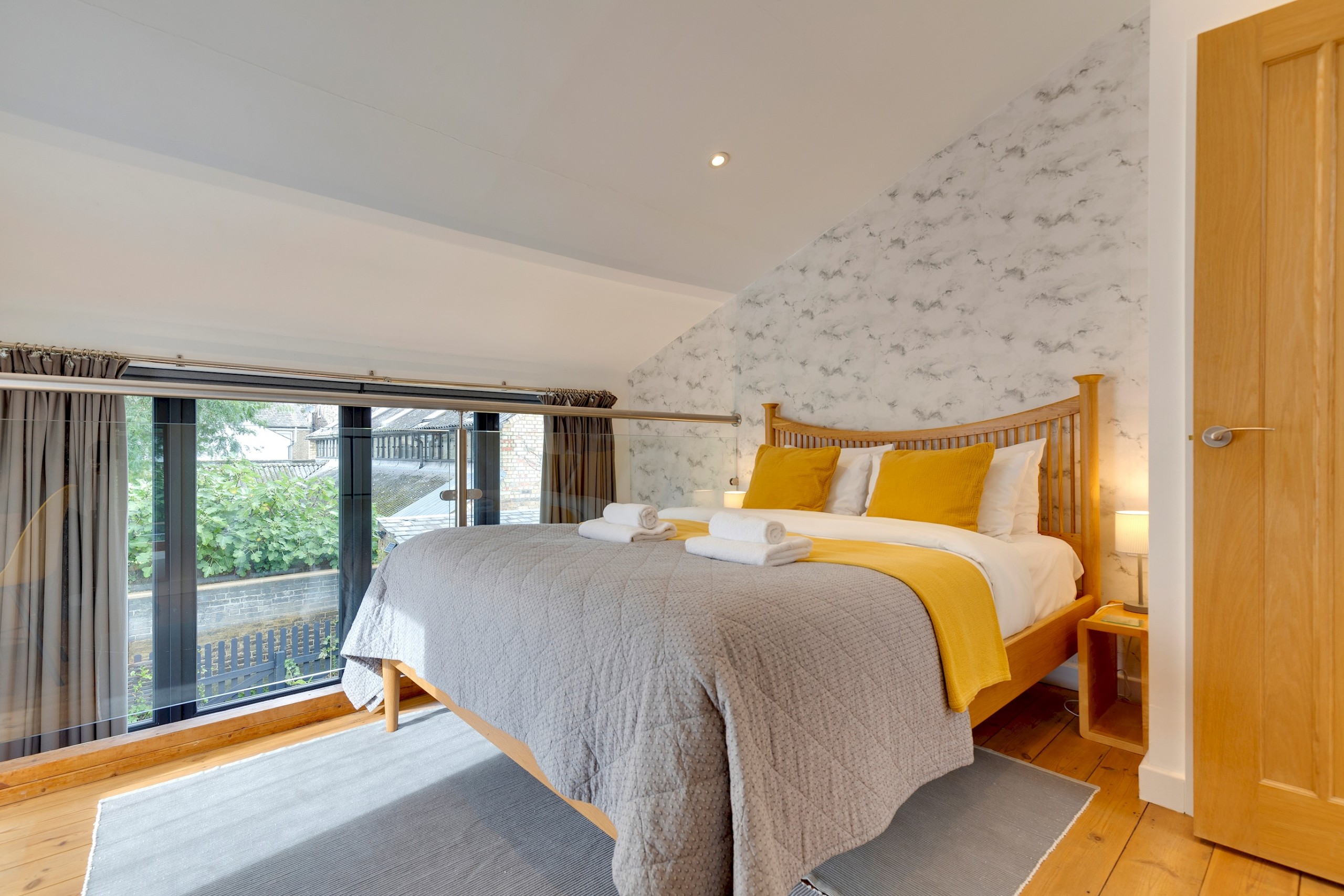 Enjoy a luxury stay in this stylish and modern home in the centre of the historical city of Cambridge, in a safe and quiet neighbourhood. This spacious one bedroom property spread over two floors, has been designed to create a relaxing and elegant experience, with a luxurious mezzanine bedroom looking out through full length floor to ceiling windows, on to your own private courtyard. This is the perfect place to explore, work, or study with everything needed a short walk away.