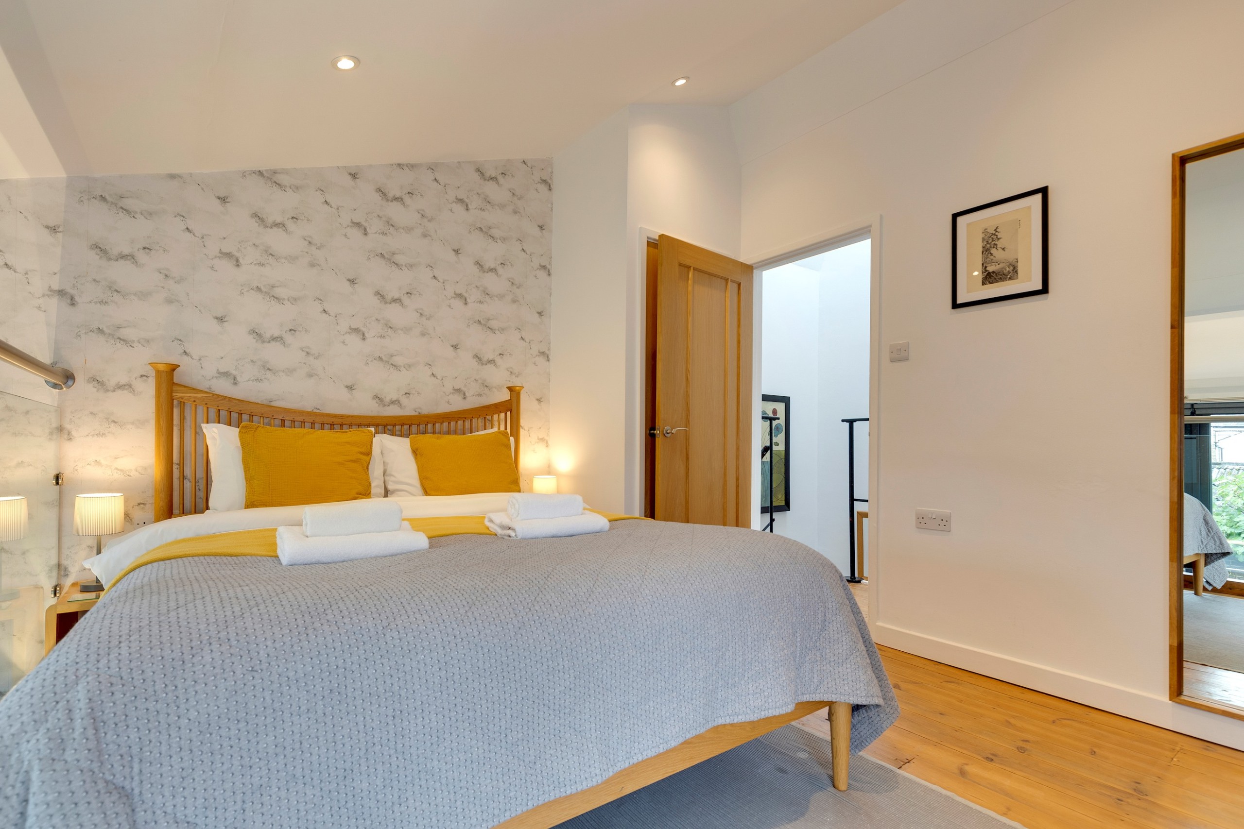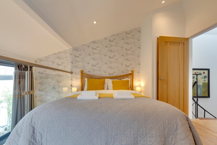 Mezzanine Bedroom: 1 x King Size Bed accessed via a spiral staircase.