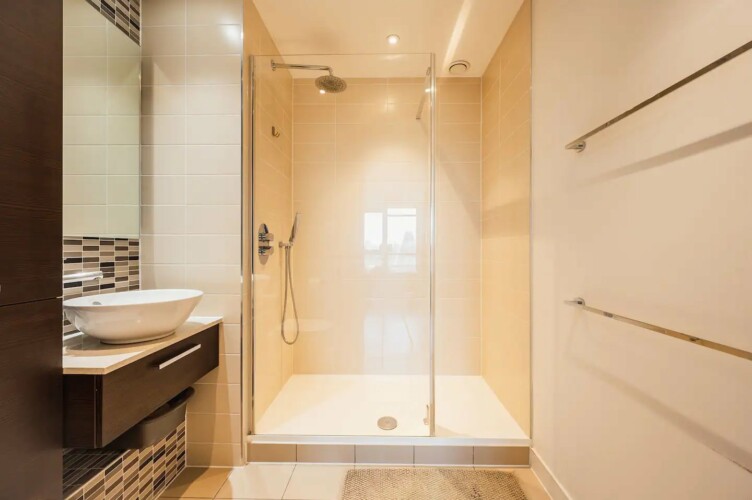 – Inside the property: The entire flat is step-free. One of the bathrooms also includes a ‘walk-in shower’.