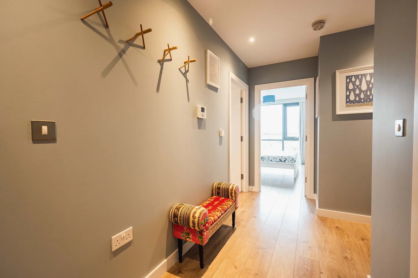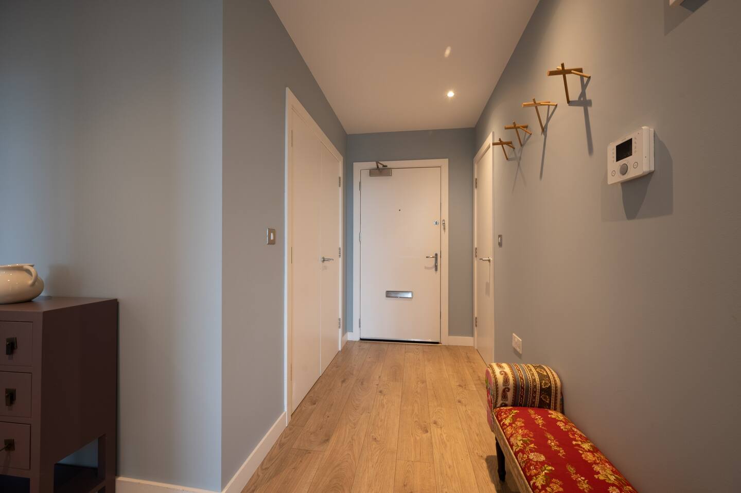 Upon entering, the hallway of our 3-bedroom flat provides practical features and amenities to enhance your stay.