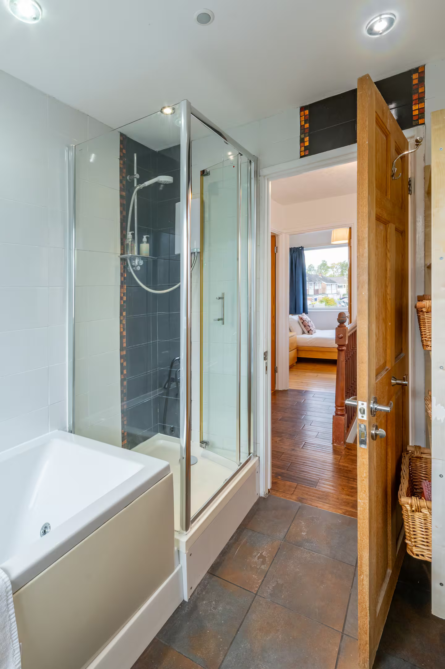 Unwind in the luxurious Jacuzzi bath or refresh under the walk-in shower — the perfect way to relax after a busy day exploring or working.