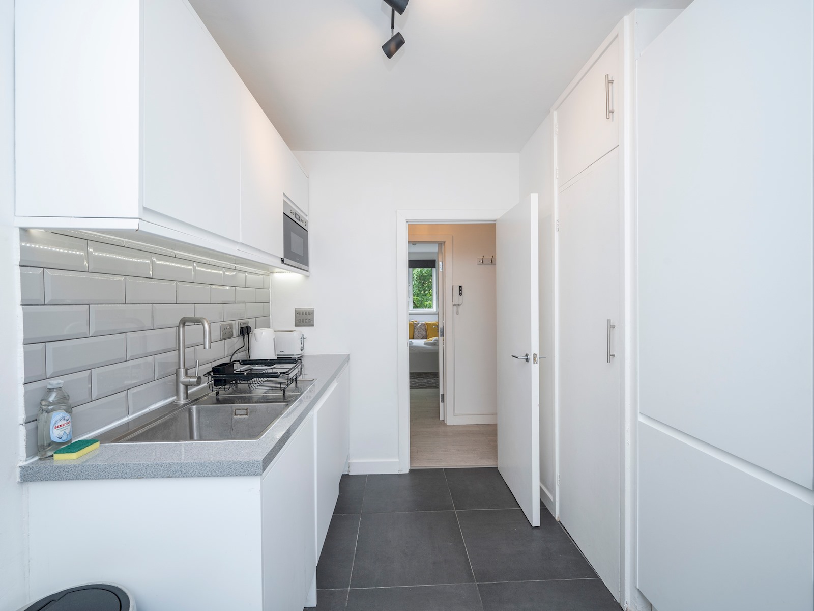 We also provide complimentary tea and coffee, miniature travel-sized shampoo, shower gel, and soap, along with a starter pack of essentials including washing-up liquid, toilet roll, and kitchen roll. For anything extra, there are convenience stores just a few minutes away on Robert Street and Albany Street.