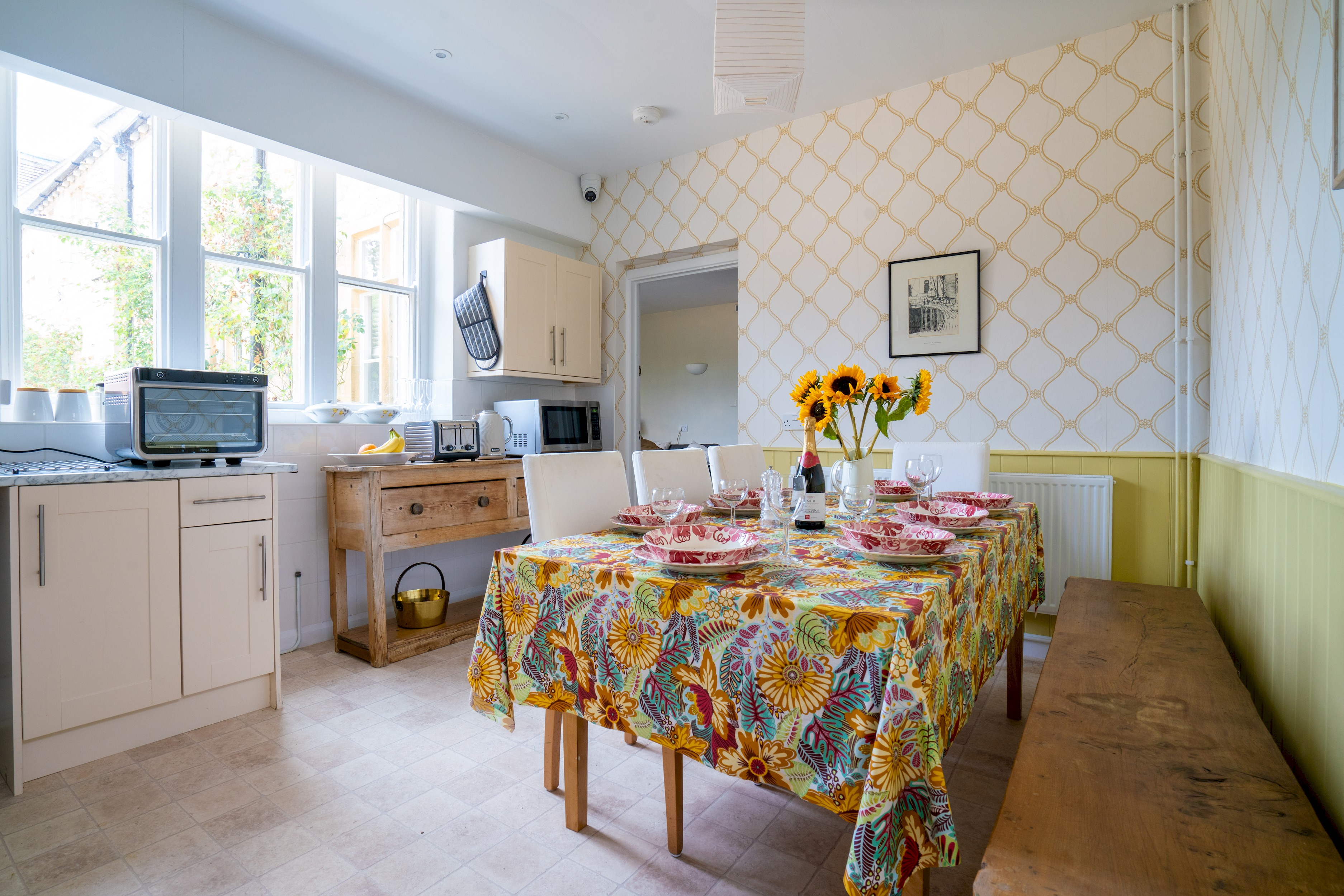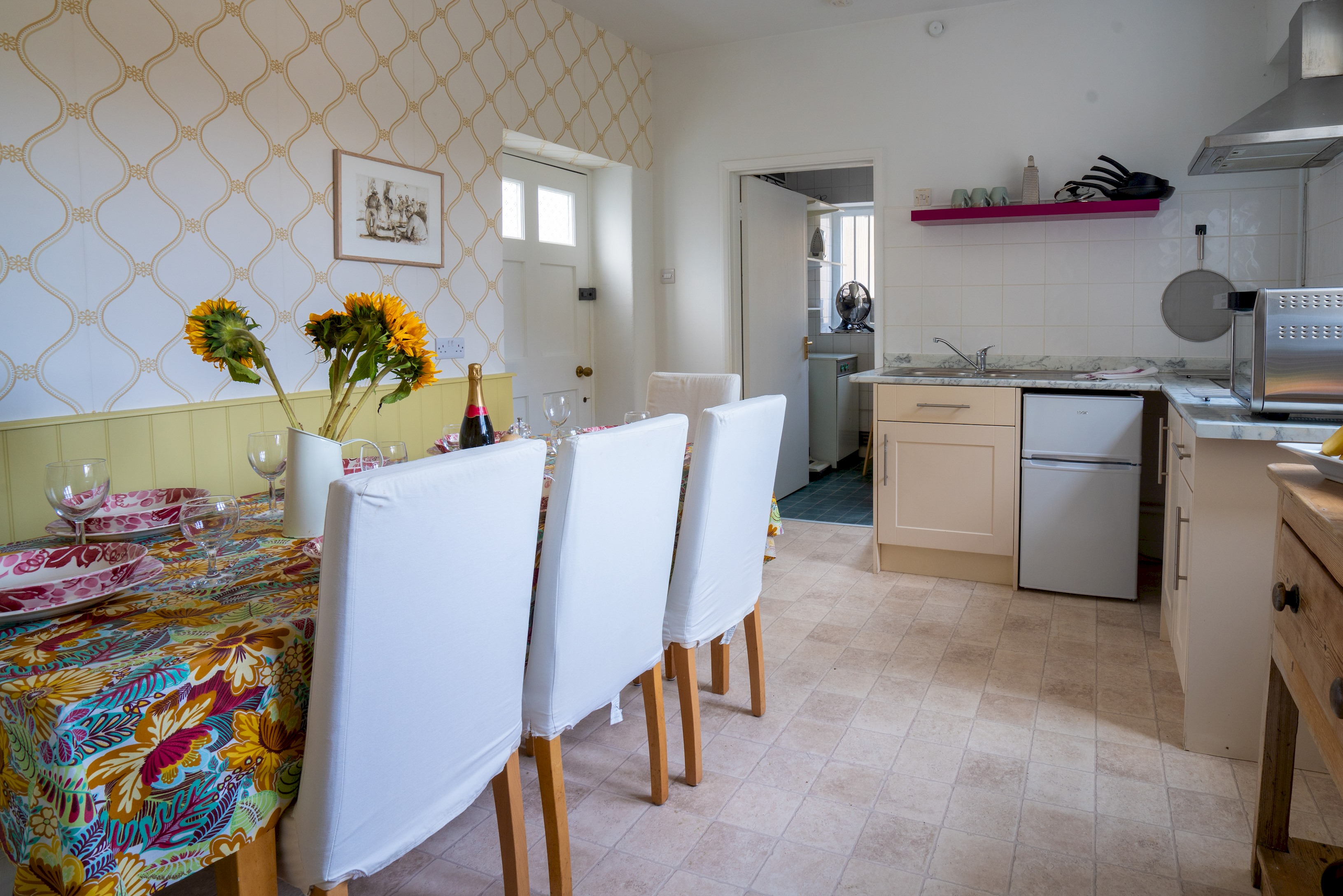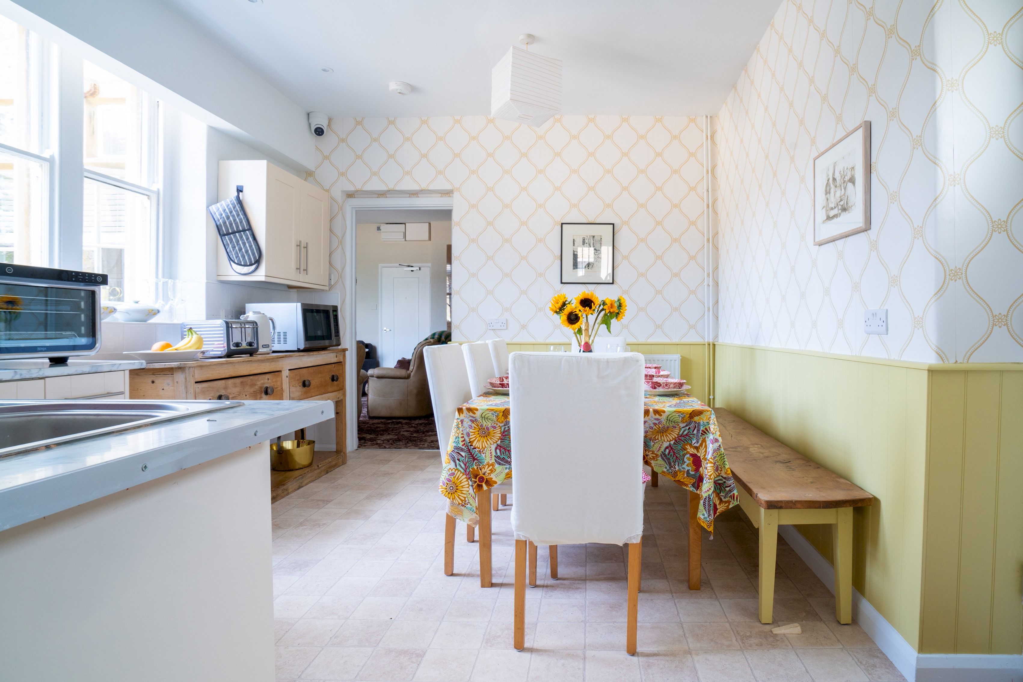 Guests enter through the secure courtyard, into a bright kitchen-diner with seating for 8 people. The kitchen caters for 8 guests, and has a Ninja multi- functional table-top oven, including an air fryer, giving guests flexibility around meal times.