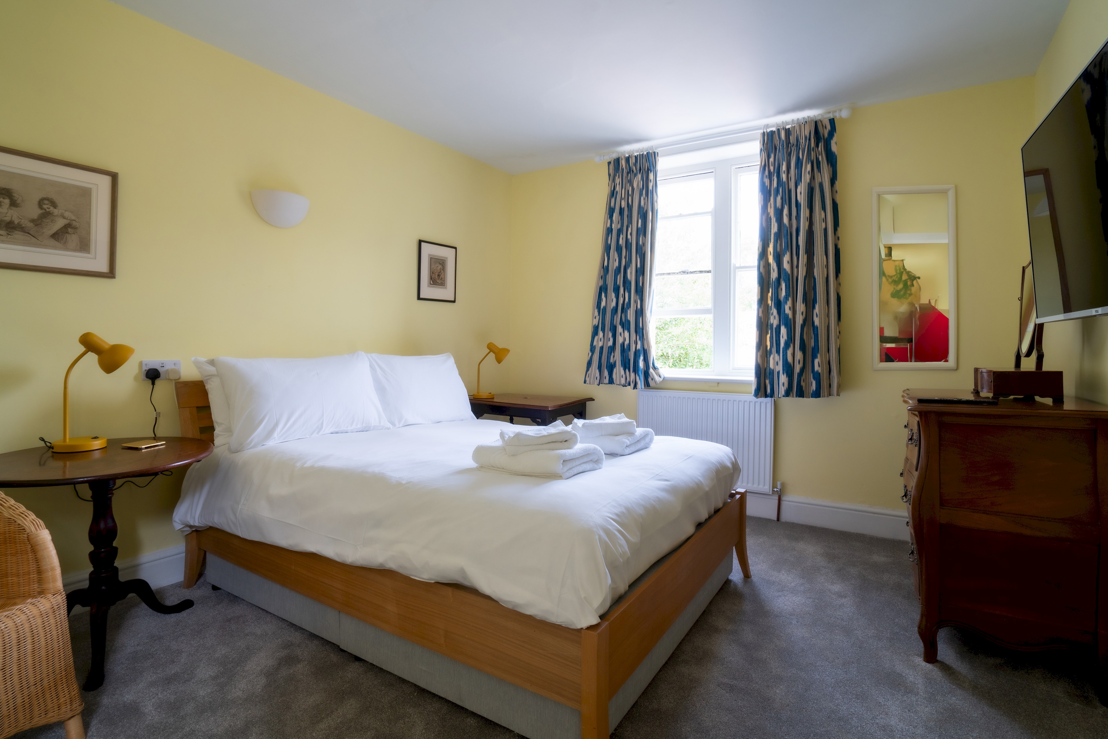 two look onto the courtyard and village. All bedrooms have a TV and there is plenty of storage space. All bedrooms come with hotel-quality crisp cotton sheets, fluffy towels for each guest and complementary toiletries, winter and summer feather duvets, and a choice of feather or non-feather pillows. Three of the bedrooms have original internal wooden shutters and