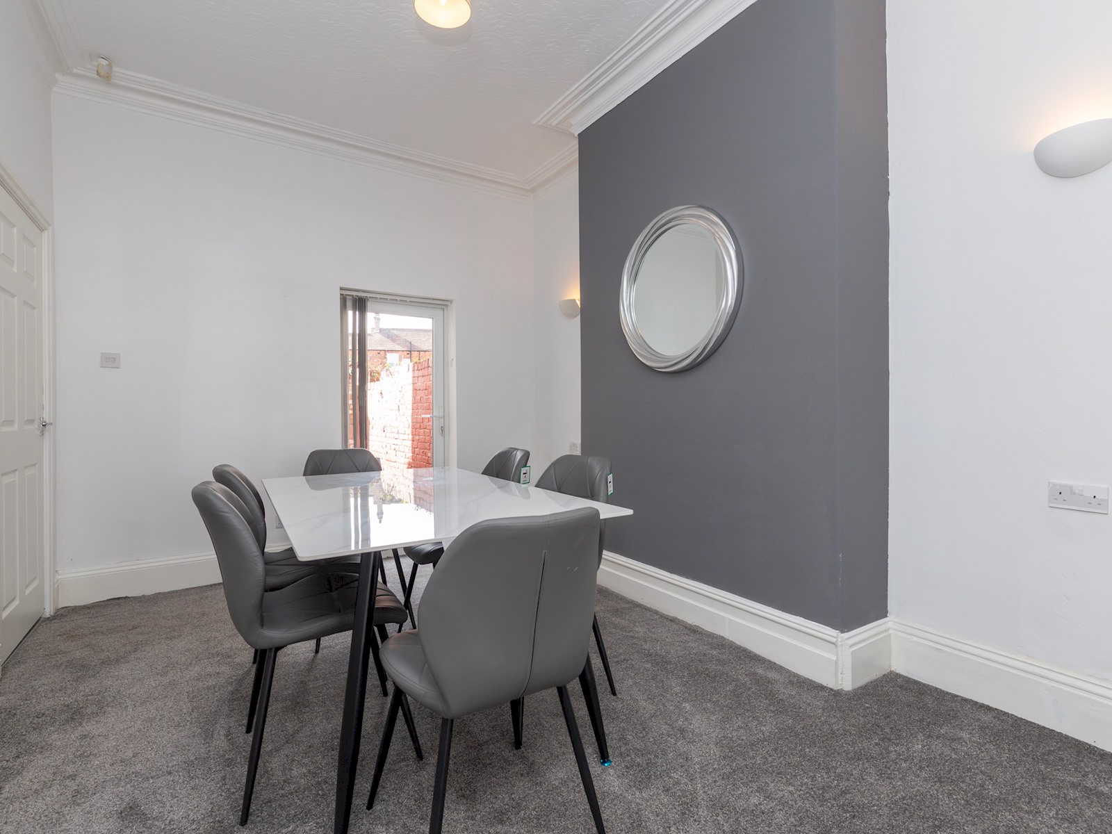Dining Room: Stylish six-seater table with modern chairs, great for shared meals or catching up after the day.
