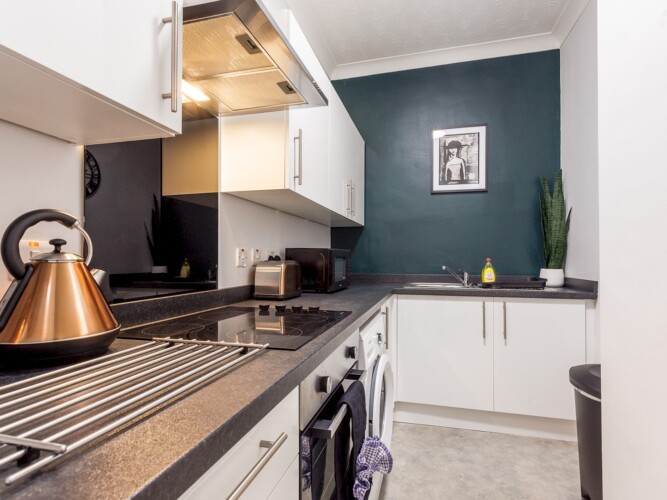 Our fully equipped kitchen has everything you need to make your stay feel like home, from a hob, microwave, and toaster to a kettle and other essential amenities. There’s also a washing machine available for your convenience. For those who prefer dining out, there are plenty of restaurants nearby.