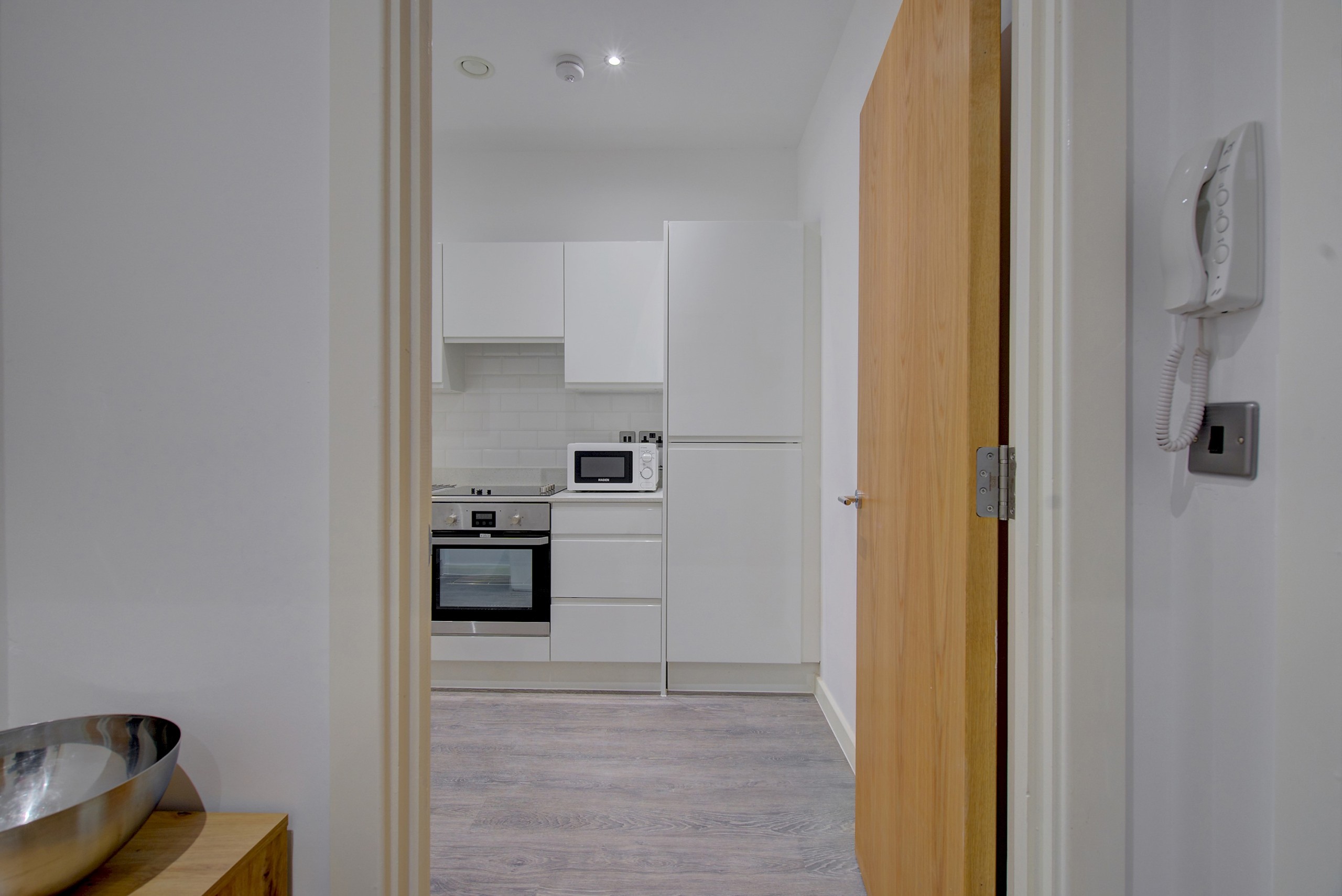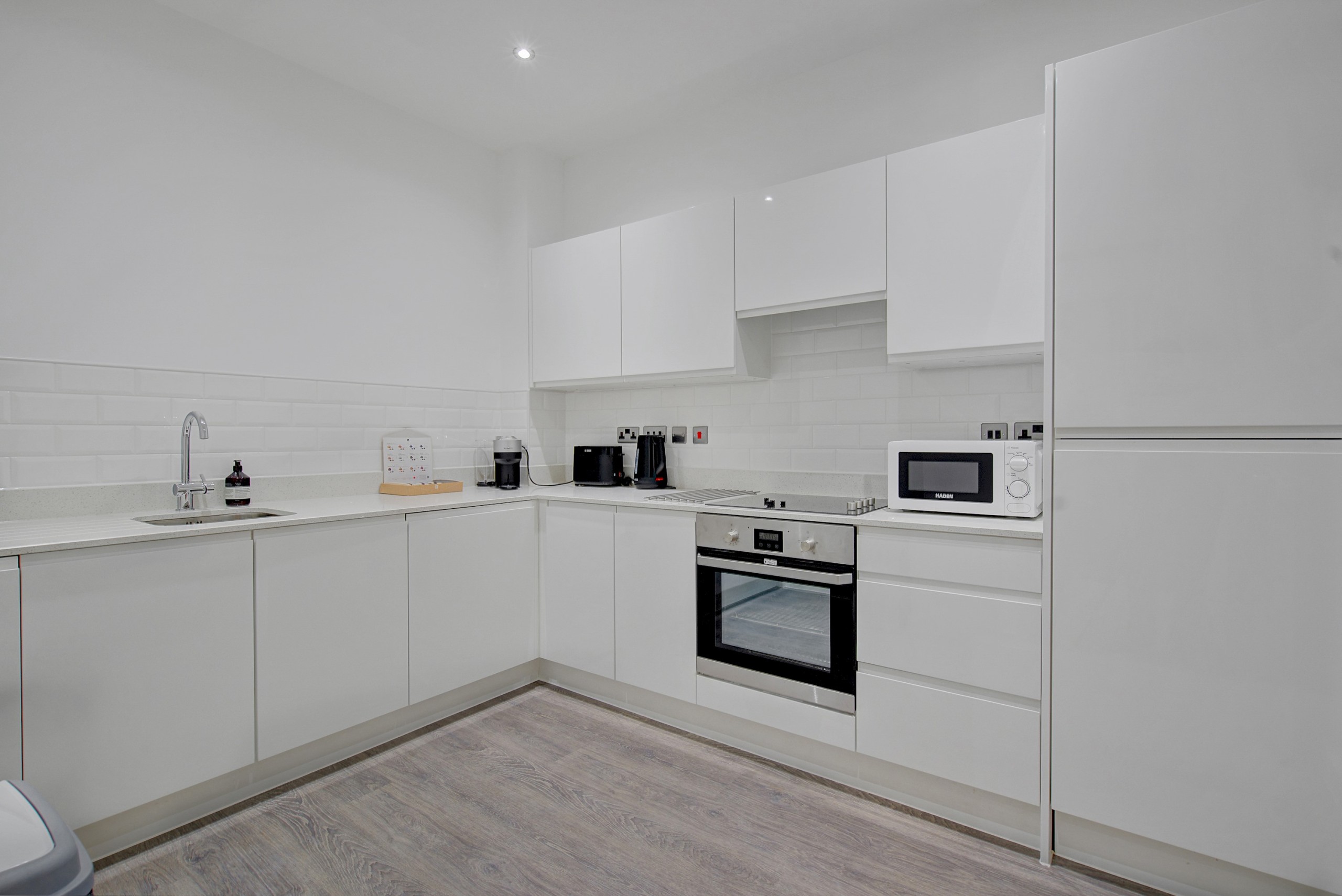 Cooker, fridge/freezer, microwave, kettle & toaster
