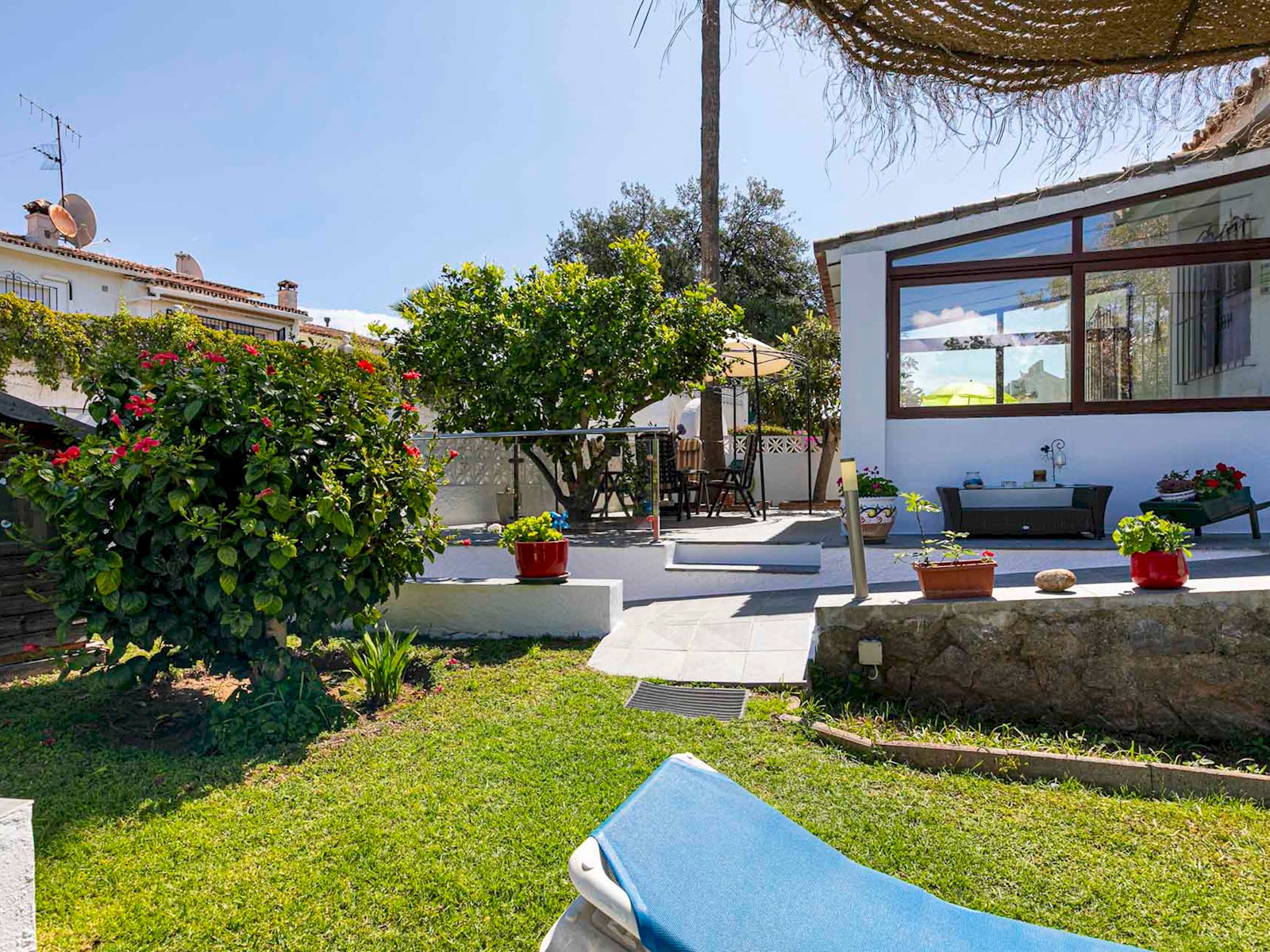 Welcome to our beautiful and cozy home, perfect for relaxing and enjoying the sunny Andalusian lifestyle. The house features a large, lush garden with multiple outdoor spaces ideal for summer afternoons — enjoy dining al fresco at the outdoor tables, or unwind on the sun loungers surrounded by greenery.