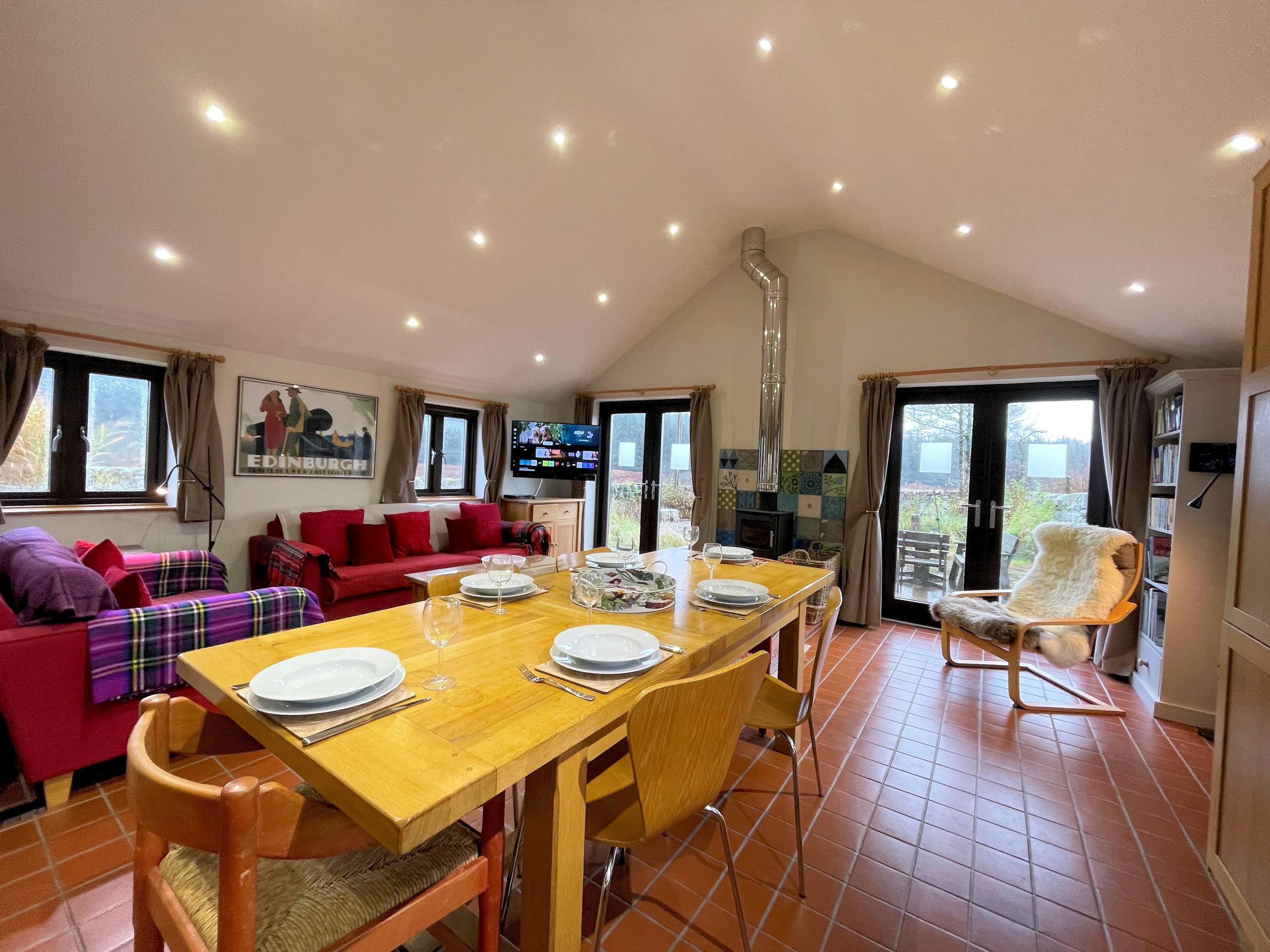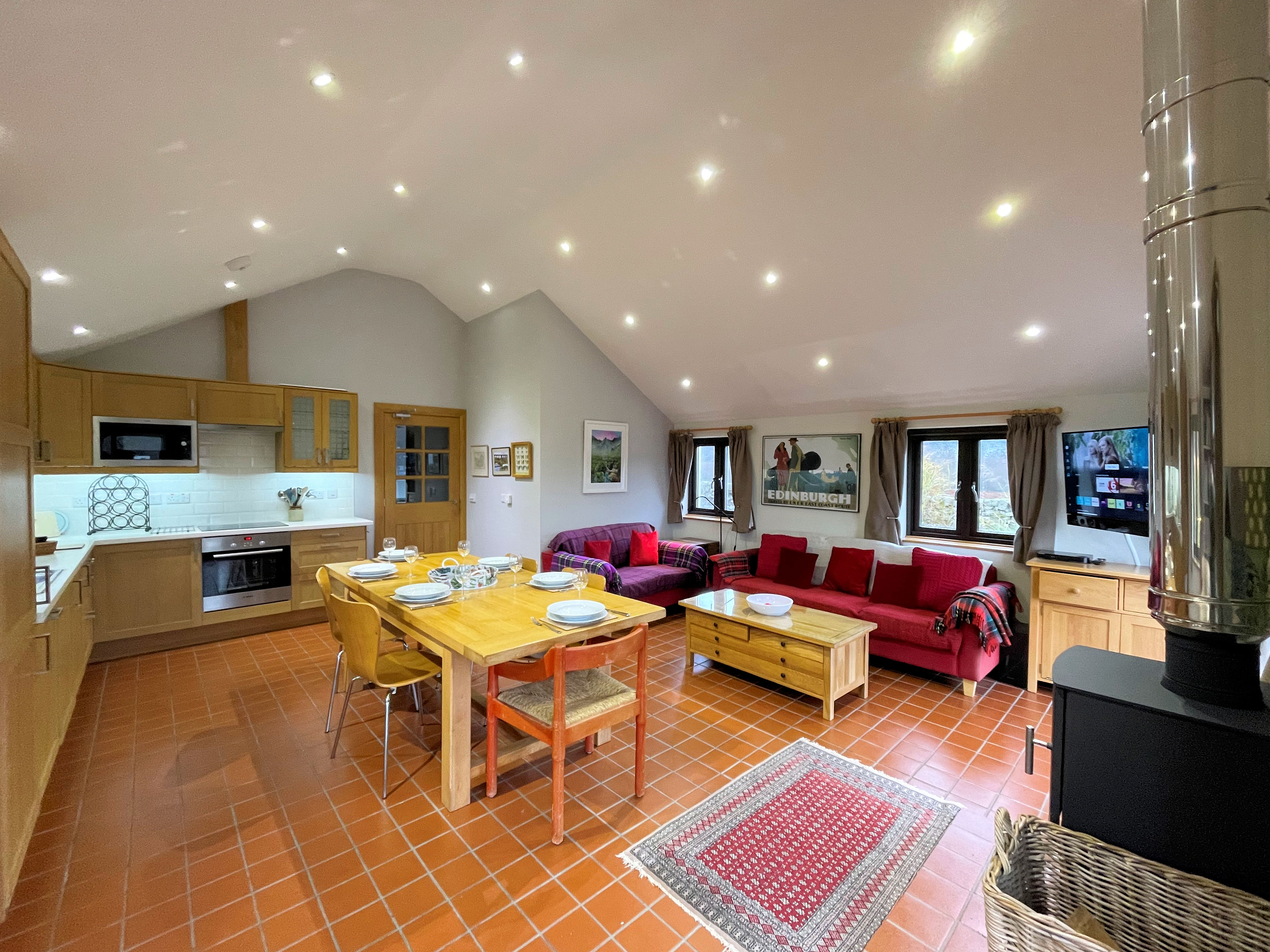 Comfortable sofas in the sitting area coupled with the log burner make it the perfect spot for a relaxing and cosy evening in front of the TV. Alternatively catch up with a good book from the selection on the bookshelf, there is also plenty of room for family games night!