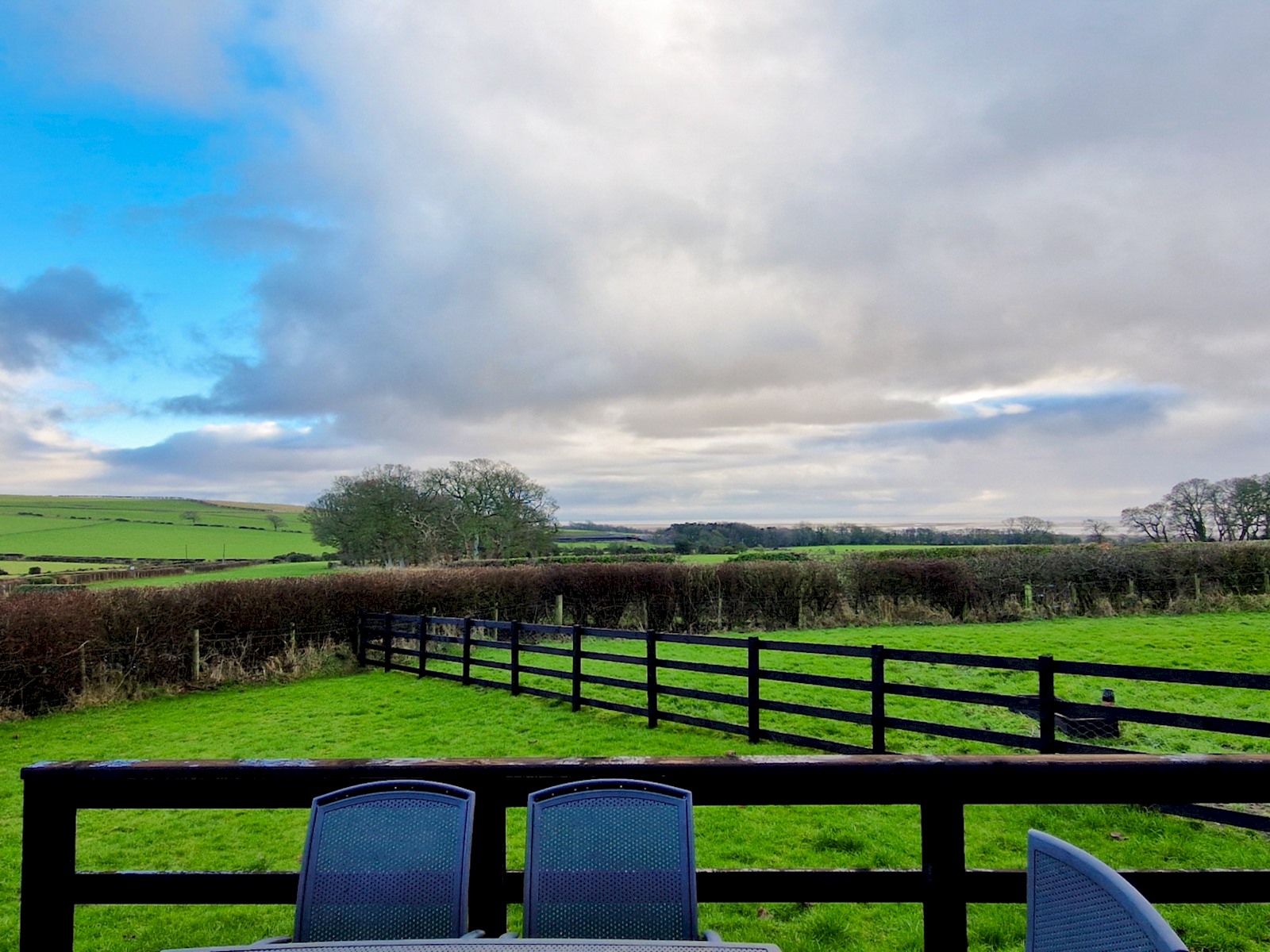 The lodge is located in a countryside setting with uninterrupted views across the Solway Coast .