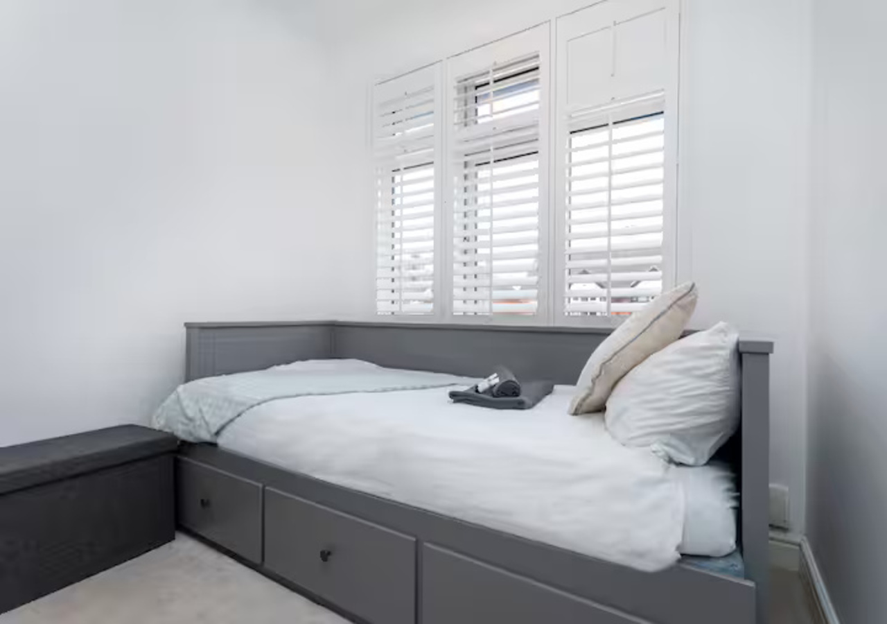 This inviting 3-bedroom property offers two generously sized bedrooms and a cosy single room, creating a relaxing and flexible space for families, professionals or small groups. Each bed is dressed with hotel-quality linen and towels, ensuring a restful, luxurious night’s sleep.