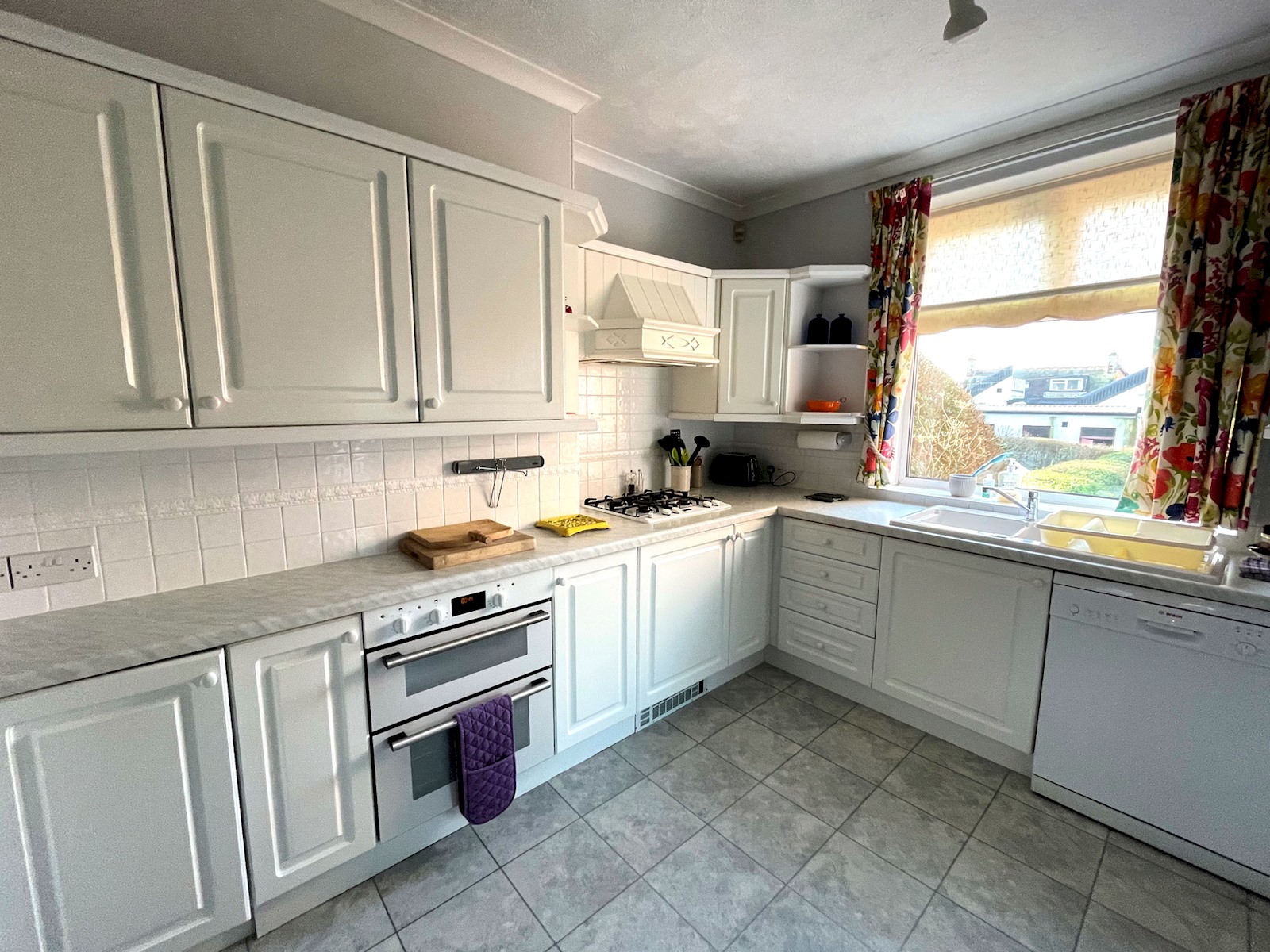 The kitchen is light and bright with plenty of room for even the most productive chef! Fully equipped, whether preparing a light lunch or 3 course dinner cooking is a breeze.