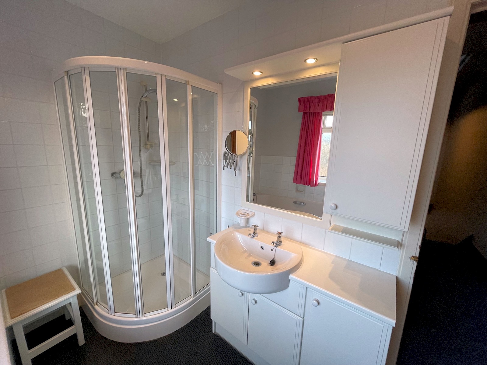The main bathroom sports both a full size bath and separate shower enclosure and has a lovely vanity unity with both floor and wall mounted cupboards, there is also a lit mirror and additional magnifying mirror.