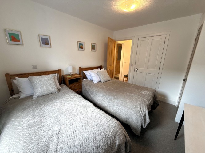 Bedroom 2 – Flexible twin single beds with the added convenience of an en-suite cloakroom.
