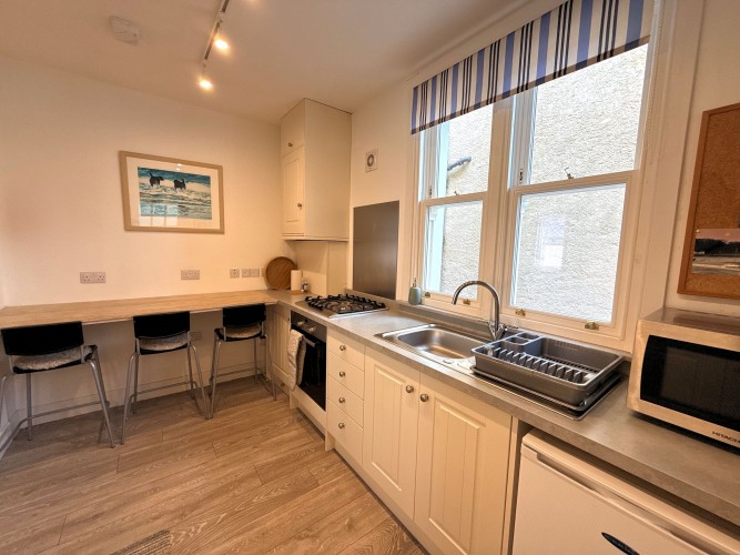 Kitchen – The modern, fully equipped kitchen has everything you need to prepare any meal, with a small breakfast bar ideal for morning coffee.