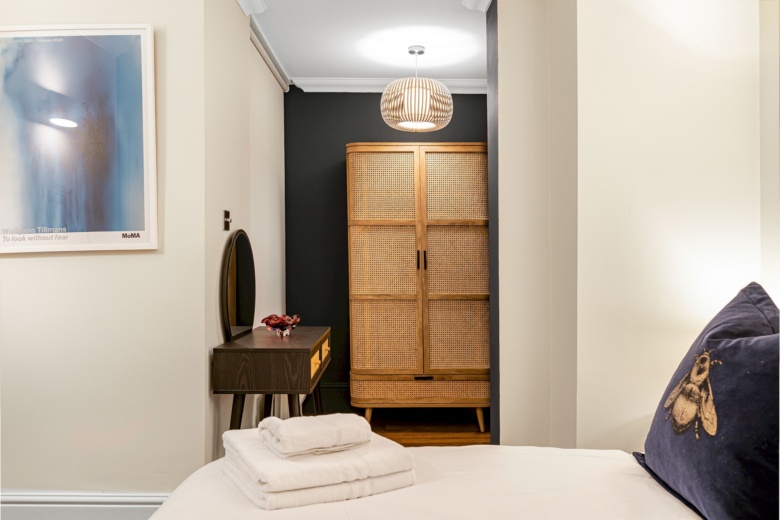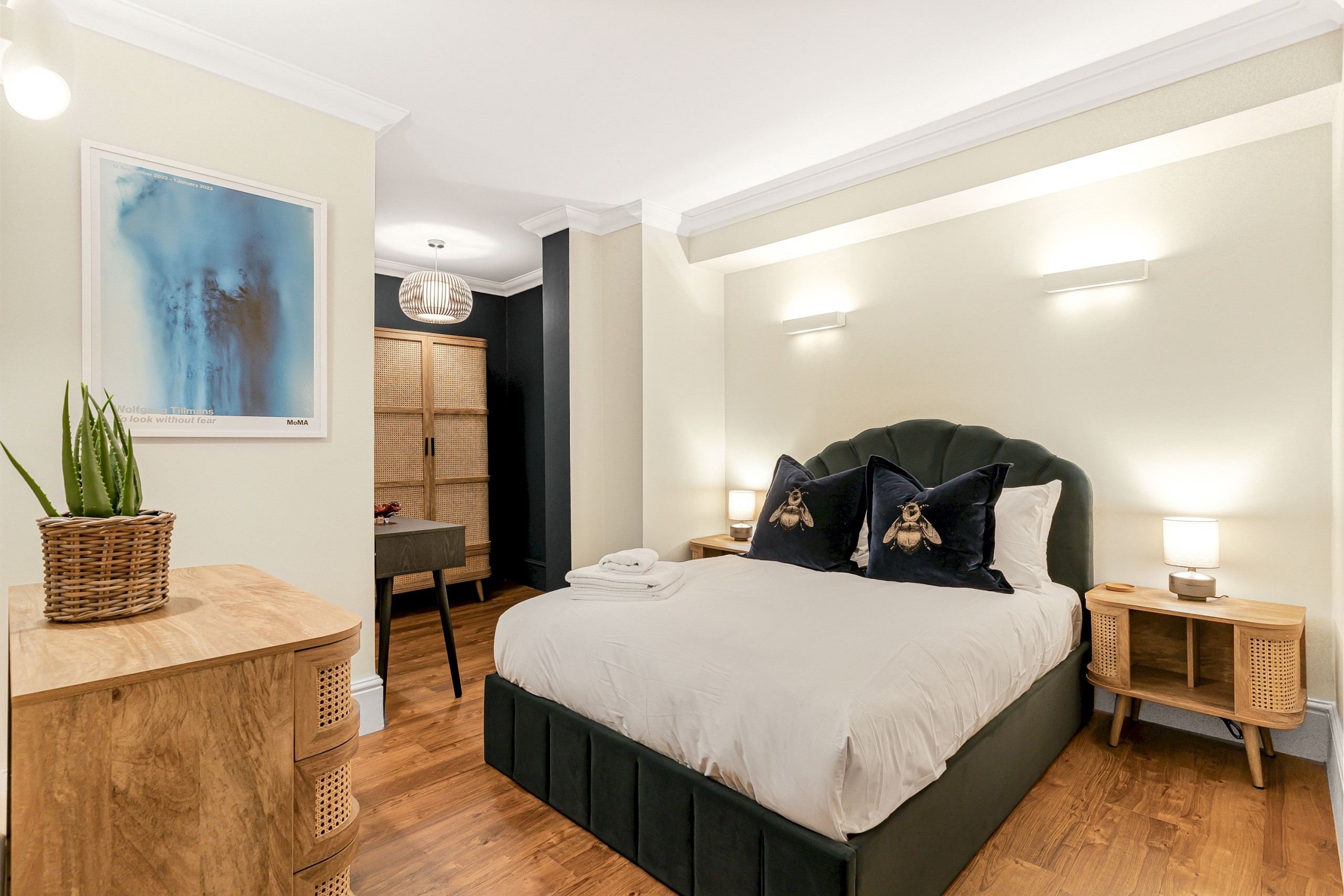 Newly renovated bohemian-chic 2-bed apartment in the heart of Marylebone. This boutique lower-ground flat offers stylish interiors, brand-new high-end furniture, and a calm, private atmosphere. Steps from Regent’s Park, Baker Street, cafés, shops, and top dining, it’s an ideal Central London base for business travellers, couples, or families seeking comfort and elegance in one of London’s most prestigious areas.