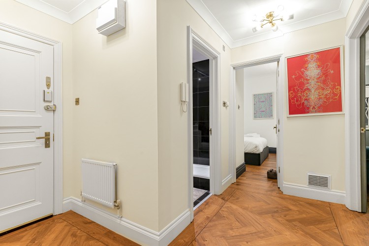 The apartment is situated on the lower-ground floor (-1) of a four-storey building with a secure entrance and CCTV throughout the building.