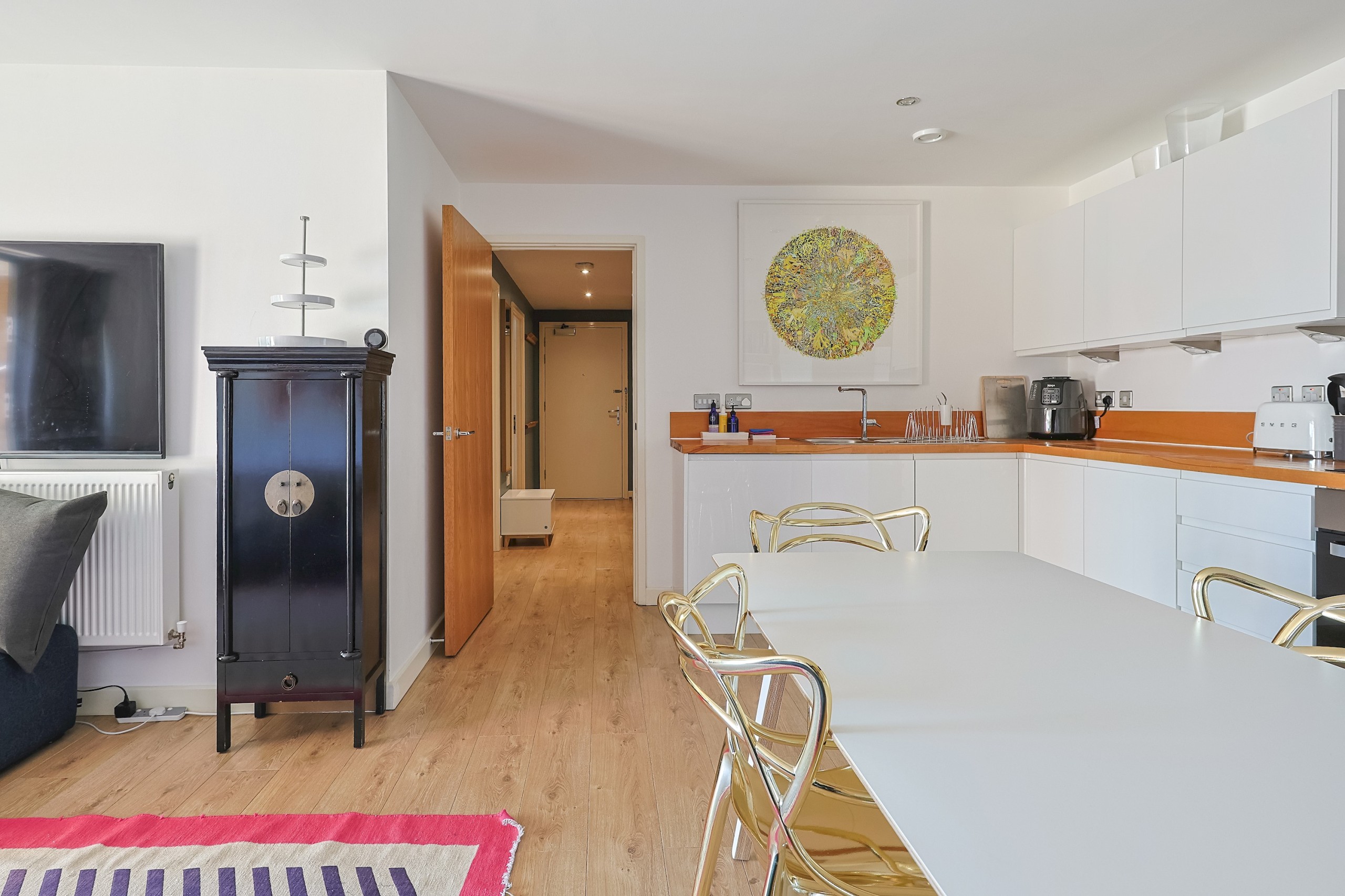 Welcome to your stylish London haven in London! Nestled within a modern and secure apartment block, this fabulous 1-bedroom, 1-bathroom flat boasts bold interiors and a contemporary aesthetic. The heart of the home features an open-plan living, dining, and kitchen area flooded with natural light—perfect for relaxing or entertaining. Stylish art pieces, sleek furnishings, and a chic colour palette set a polished, inviting tone.