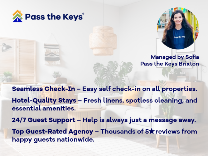 Hi, I am Sofia, owner of Pass the Keys - Brixton. I am very passionate about the rich heritage, diverse culture, central location and beauty that is offered in this area. I have lived almost all my life in Streatham - part of this territory and therefore I have experienced the joys of the area through the lens of my childhood, young adulthood and now as a mother with young children myself.