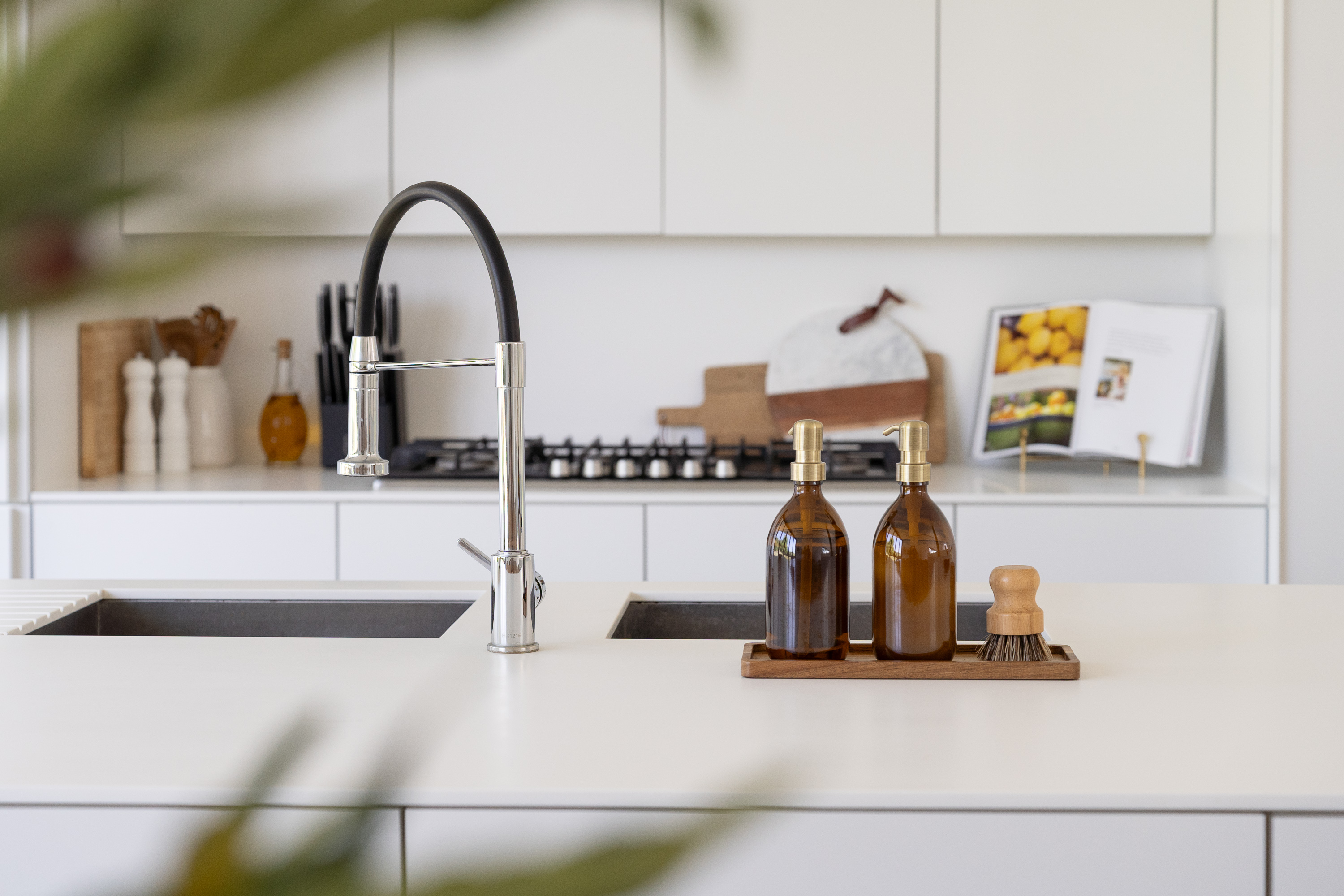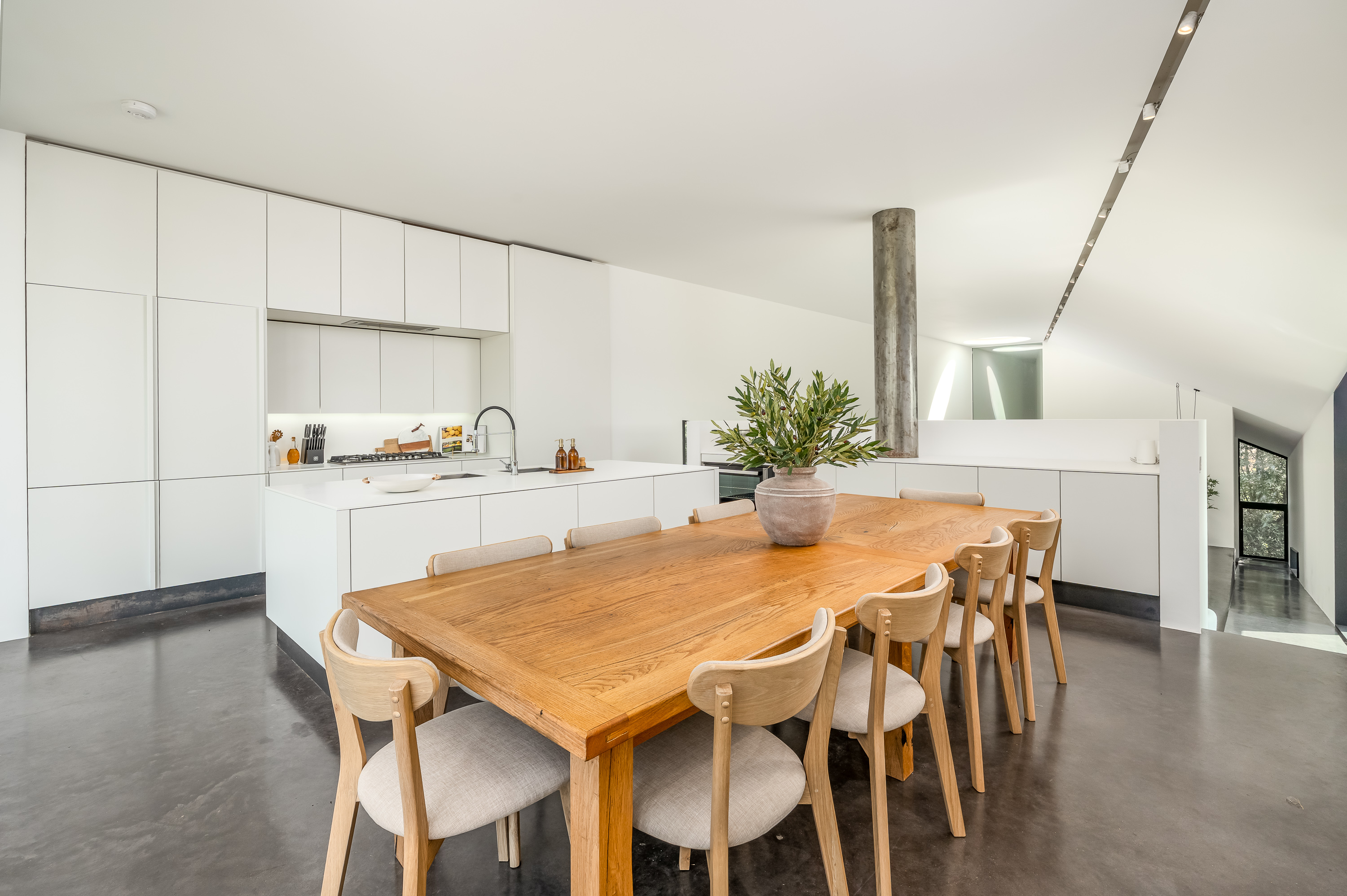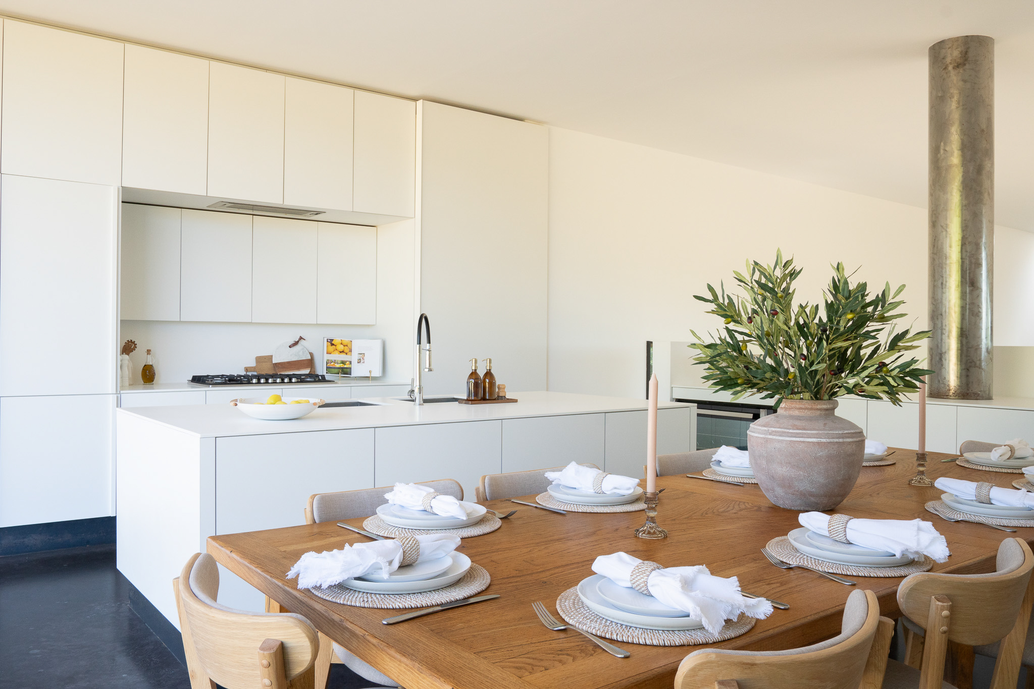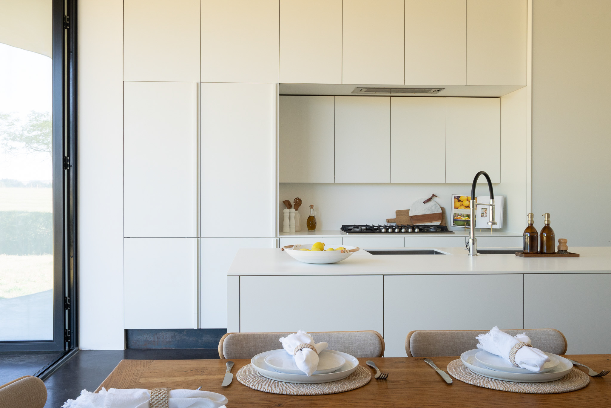 Sleek, Fully Equipped Kitchen – Handleless cabinets, large island, premium appliances, and everything you need for home-cooked meals