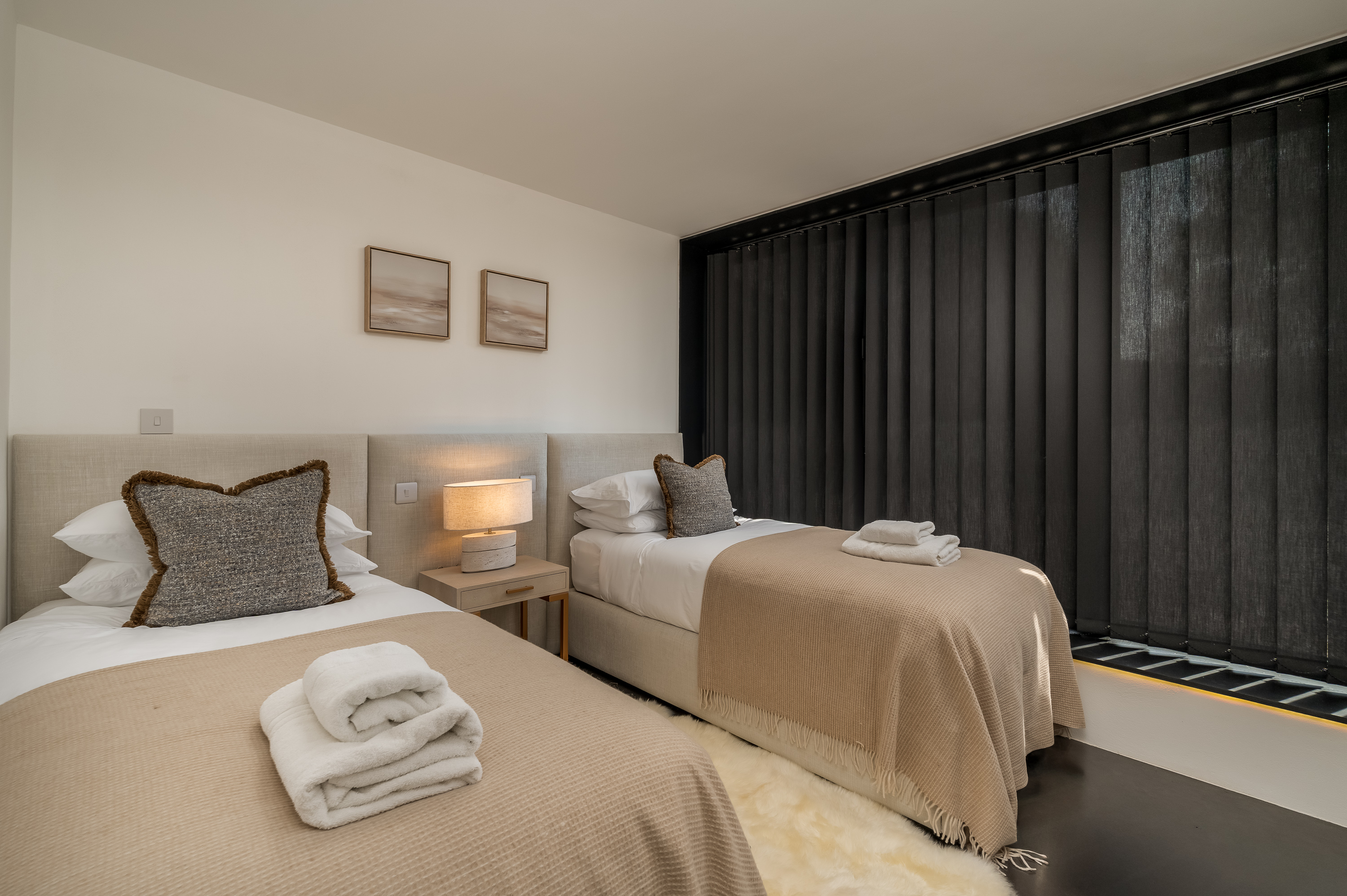 3 Stylish Bedrooms – A mix of doubles, twins, and a statement four-poster bed, all with premium linens, soft lighting, and calming décor