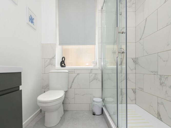 The bathroom is fully equipped with a shower, providing a relaxing and refreshing experience.