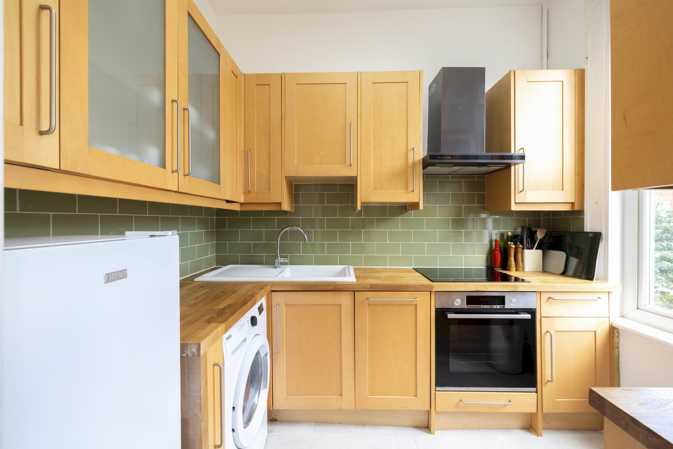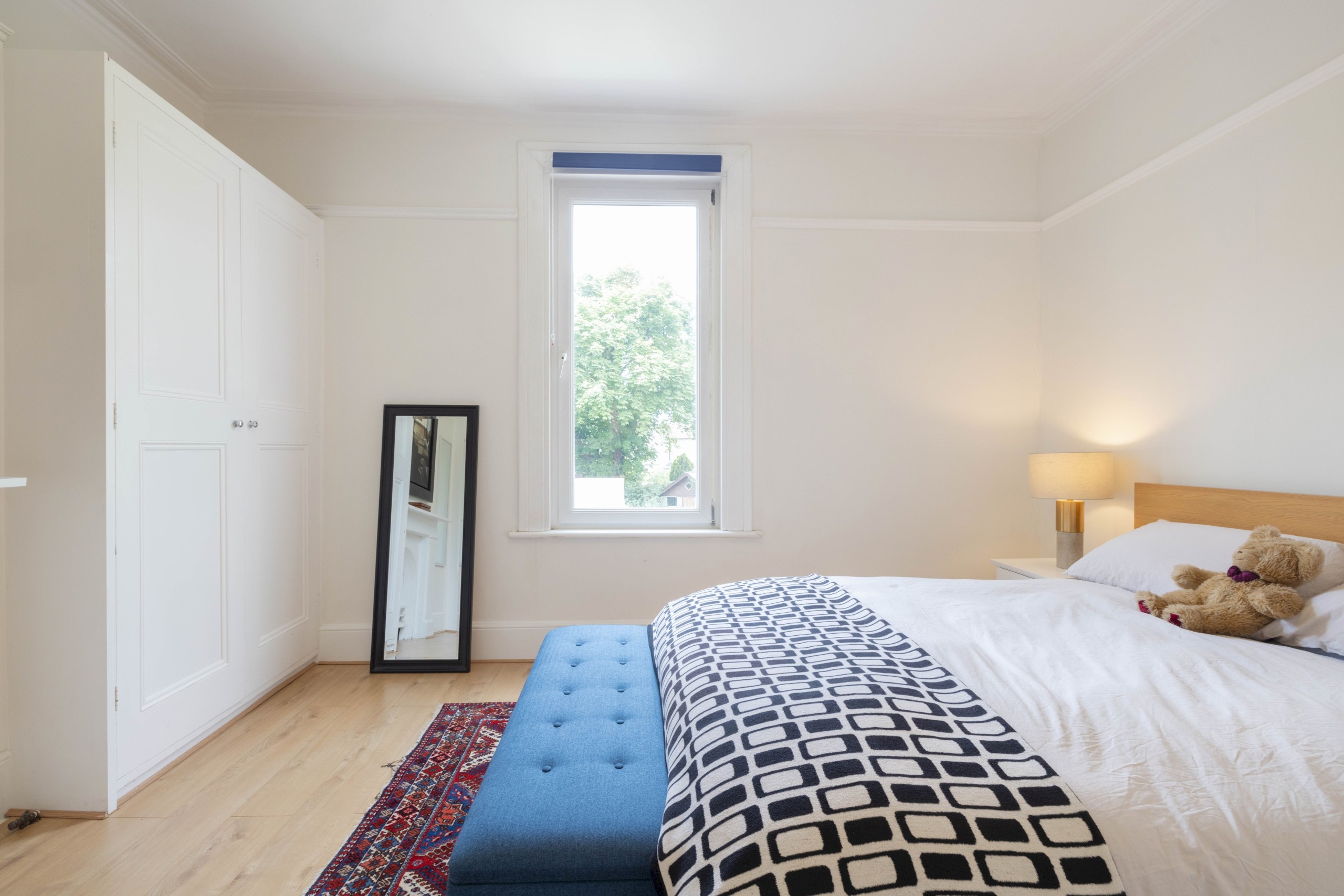Enter this newly renovated apartment and appreciate the original Victorian features alongside the modern finish. There is a bright living room that has a double sofa bed to accommodate two extra guests and a great dining table where you can have a enjoy a meal in after a busy day out of the house. There is a modern kitchen fully equipped with all the appliances you would expect.