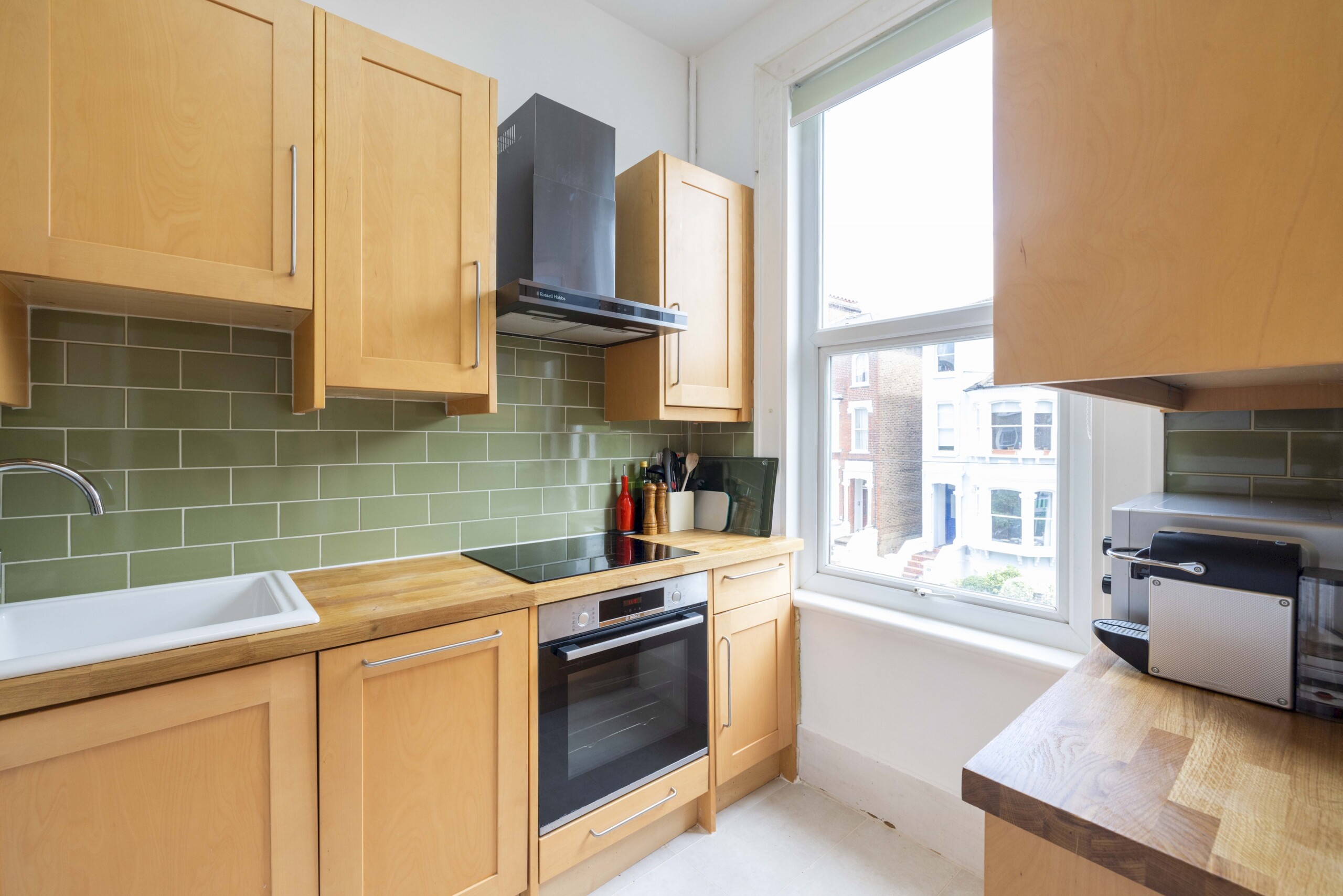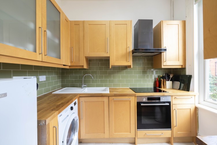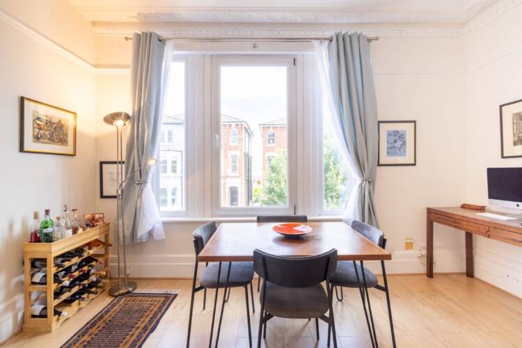 Enter this newly renovated apartment and appreciate the original Victorian features alongside the modern finish. There is a bright living room that has a double sofa bed to accommodate two extra guests and a great dining table where you can have a enjoy a meal in after a busy day out of the house. There is a modern kitchen fully equipped with all the appliances you would expect.
