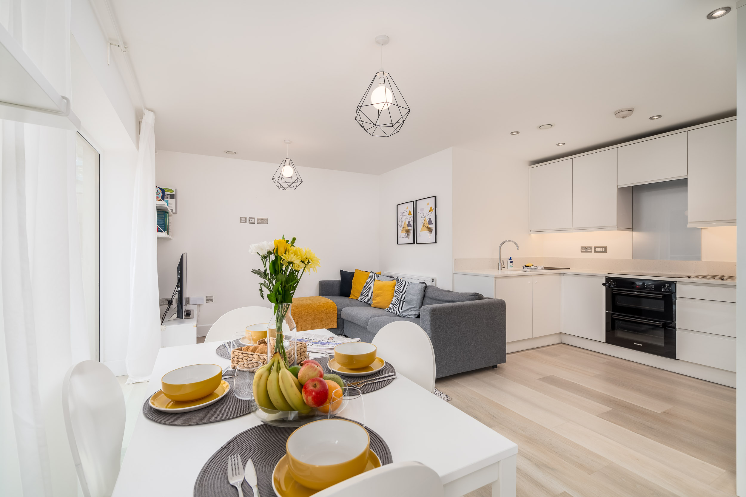 – The space offers a comfortable living area which is perfect for kicking back and relaxing on the sofa to watch your favourite shows on the extra large television, or enjoying a meal on the dining table.