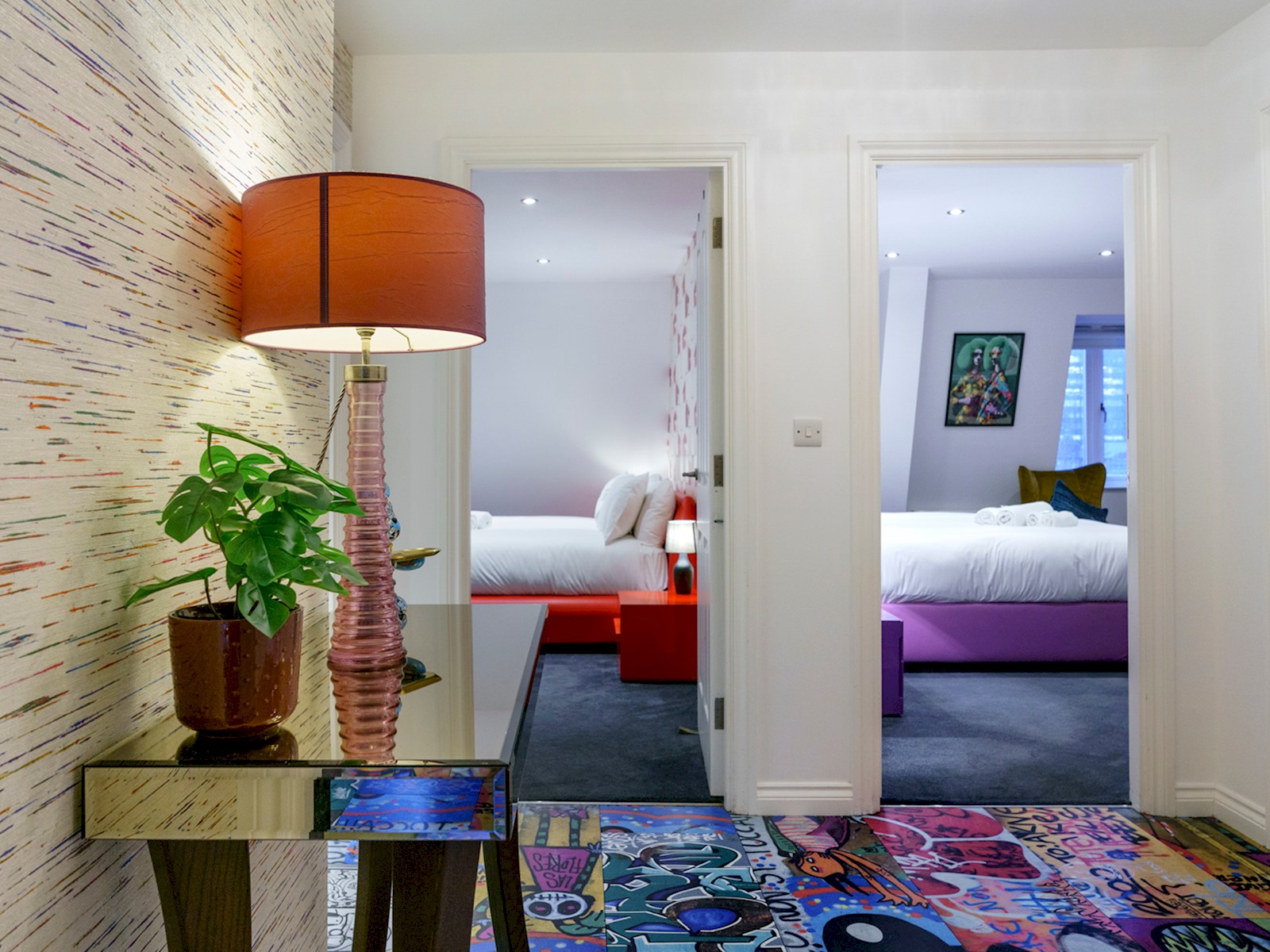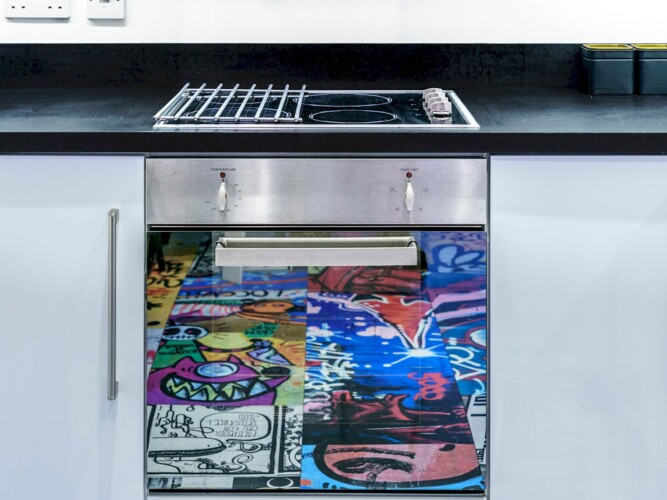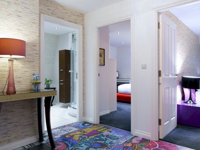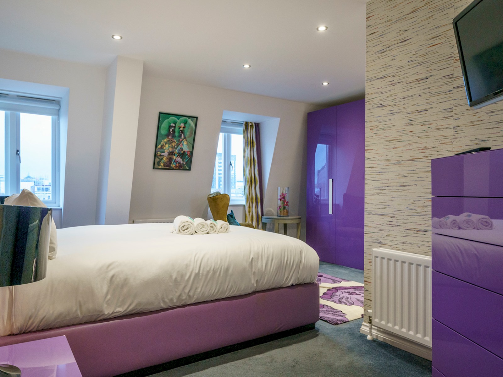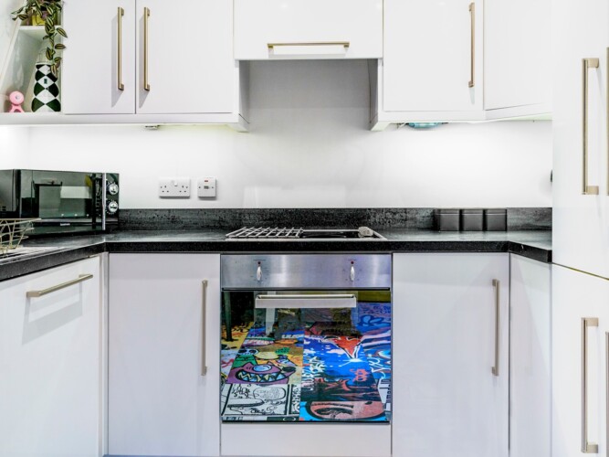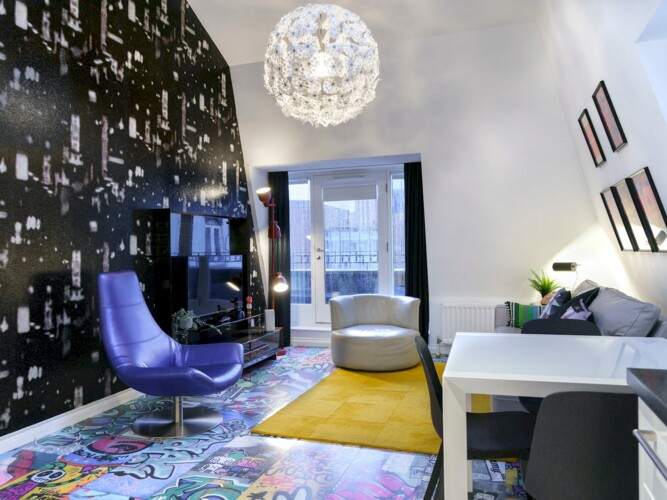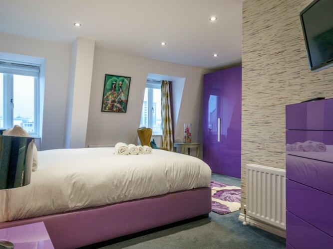 Eclectic 2 bed apartment in the heart of Belfast’s historic Cathedral Quarter. Furnished to the highest standard you will love the spacious interior, plush furnishings, and juliette balcony offering breathtaking views across the piazza and towards the spire of St Anne’s Cathedral . On your doorstep you will find the best eateries, bars, cafes and theatres this beautiful city has to offer and although we offer free parking, the central location means all tourist attractions are easily walkable 🙂