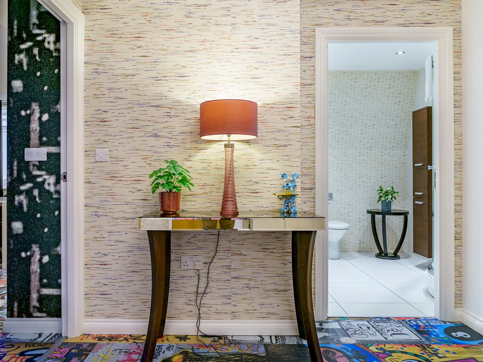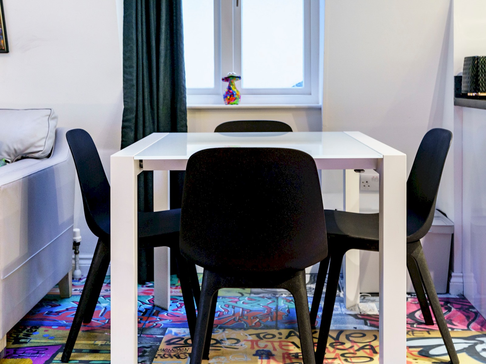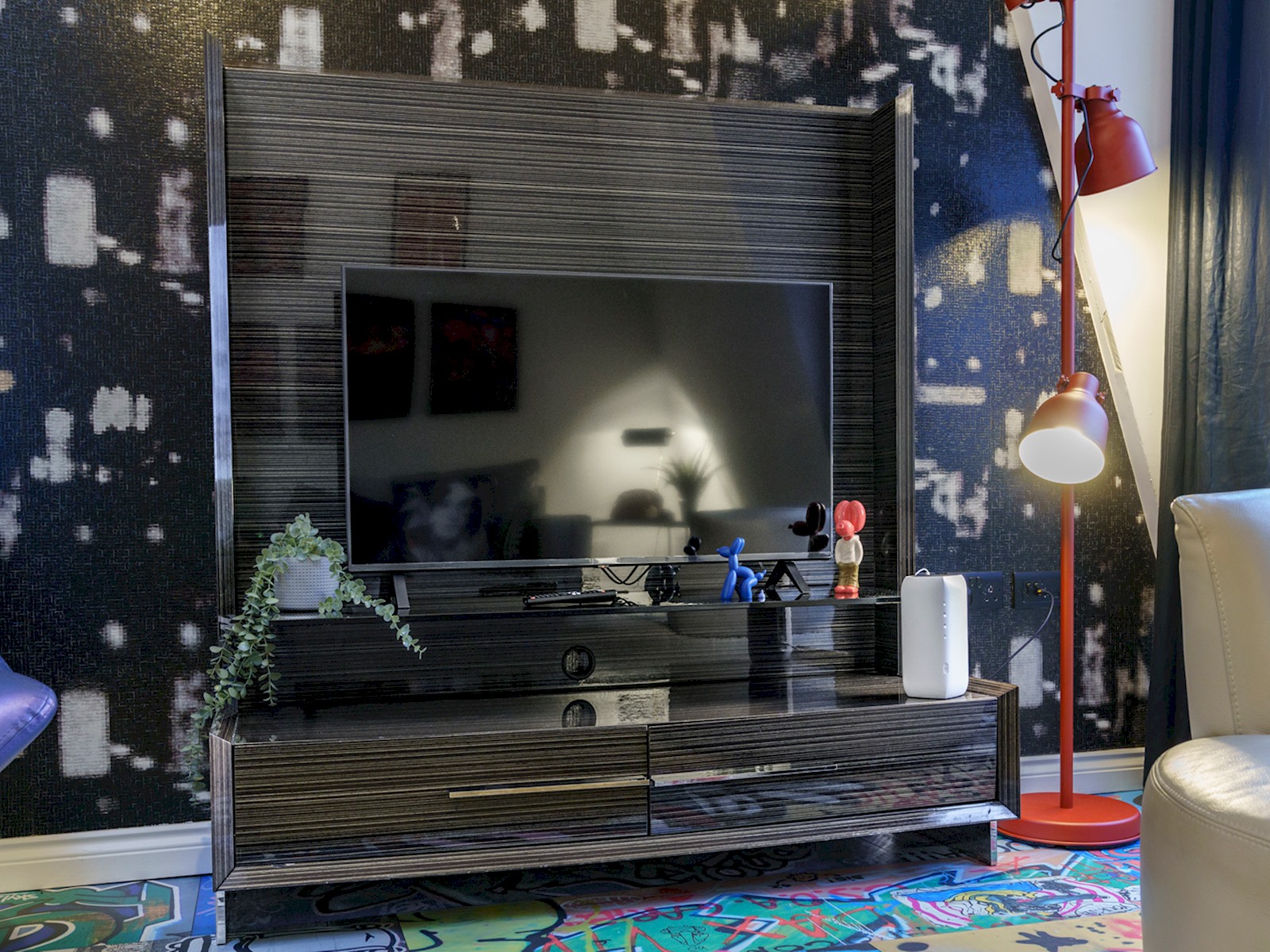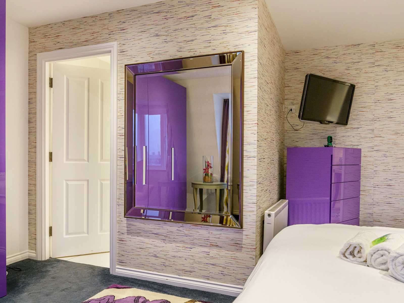 Eclectic 2 bed apartment in the heart of Belfast’s historic Cathedral Quarter. Furnished to the highest standard you will love the spacious interior, plush furnishings, and juliette balcony offering breathtaking views across the piazza and towards the spire of St Anne’s Cathedral . On your doorstep you will find the best eateries, bars, cafes and theatres this beautiful city has to offer and although we offer free parking, the central location means all tourist attractions are easily walkable 🙂