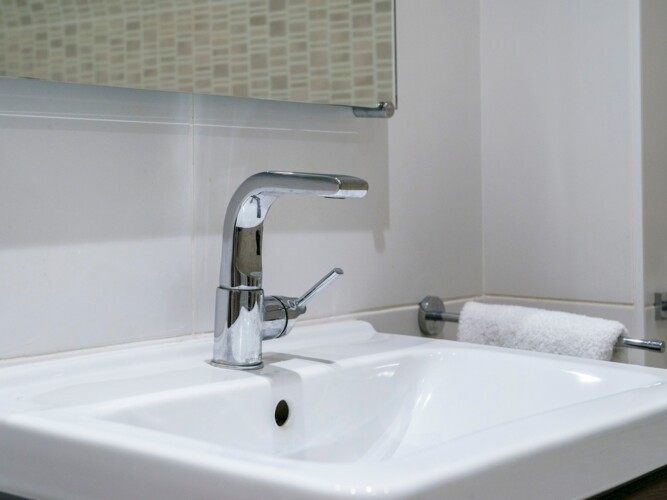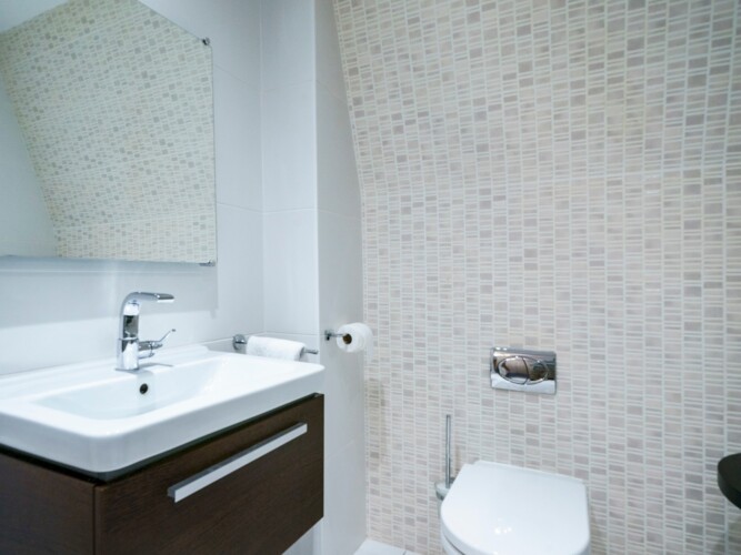 Main bathroom has both shower and a bath for guest comfort.