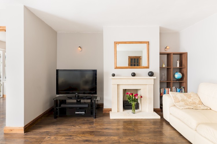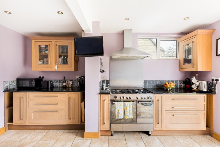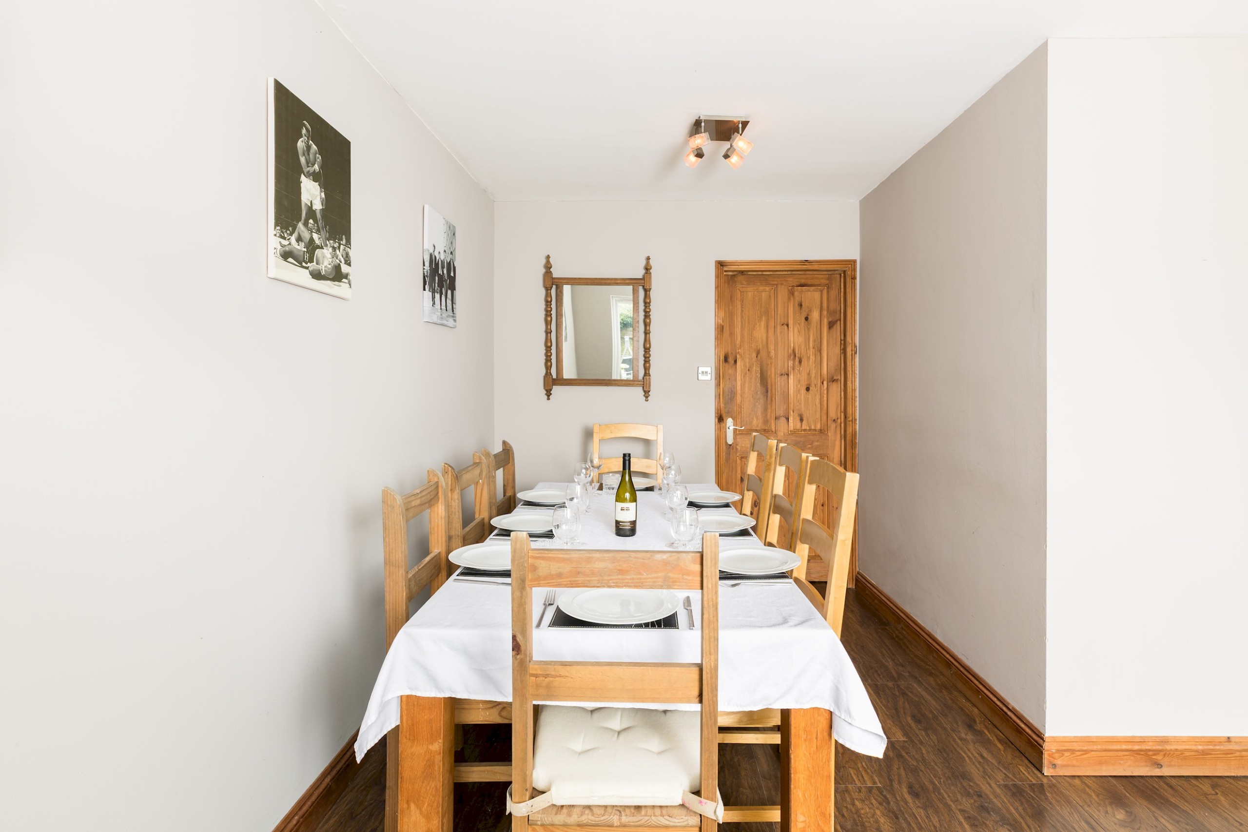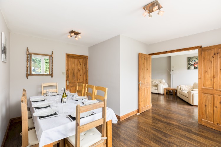 The ground floor also offers a spacious sitting room with plenty of comfortable seating and a television, leading through to a dining room with a large table that seats up to 10 guests—ideal for shared meals and celebrations.