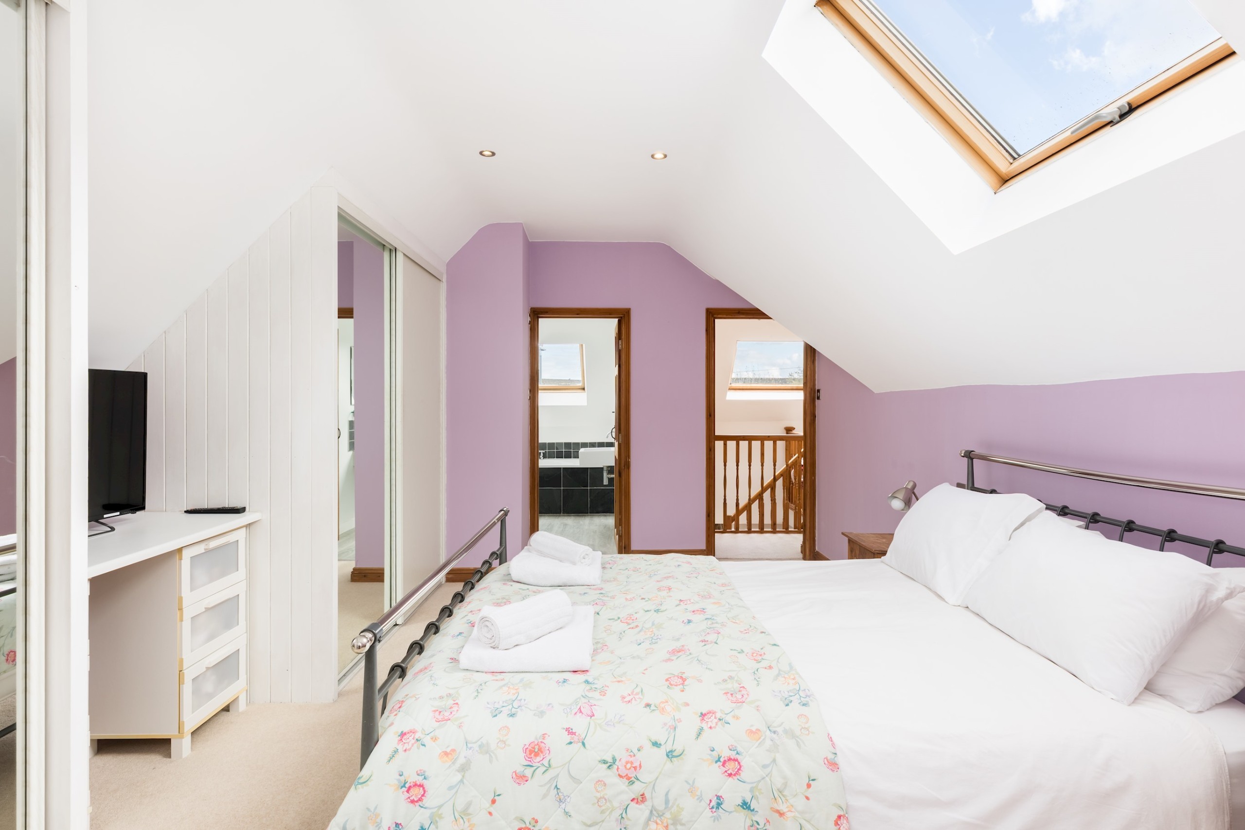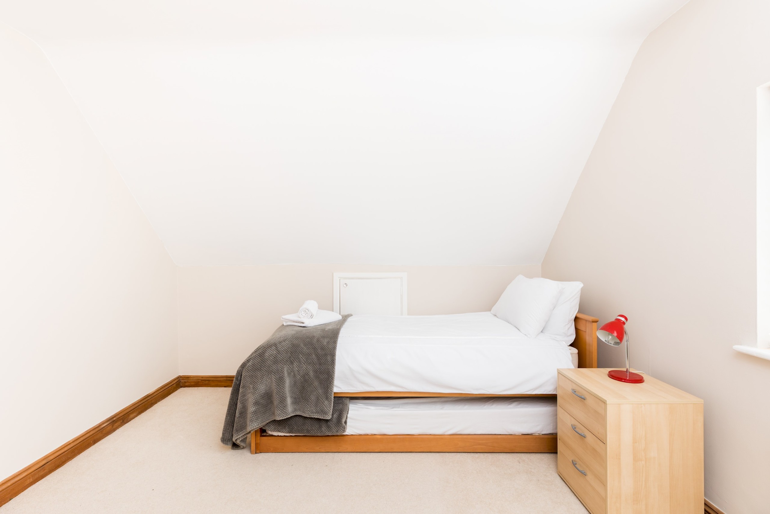Upstairs, the property continues to impress. The master bedroom features a king-size bed, ample wardrobe space, and a private en-suite bathroom. Along the hallway, you’ll find another king-size bedroom, additional bathrooms, a cosy single room with a trundle (pull-out) bed, and a further double bedroom—providing flexible sleeping arrangements for your group.