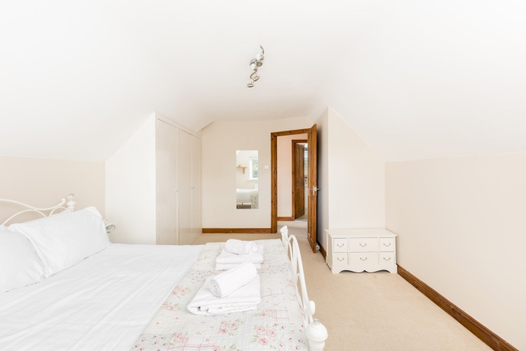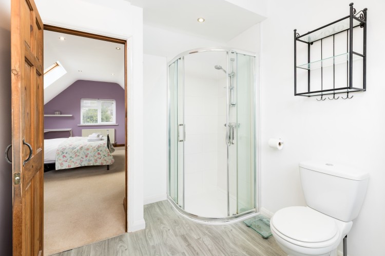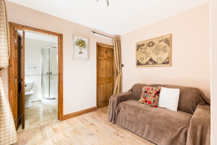 Also on this level is a versatile bedroom featuring a double bed and an additional single bed, along with a convenient downstairs shower room and toilet—great for guests who prefer to avoid stairs.
