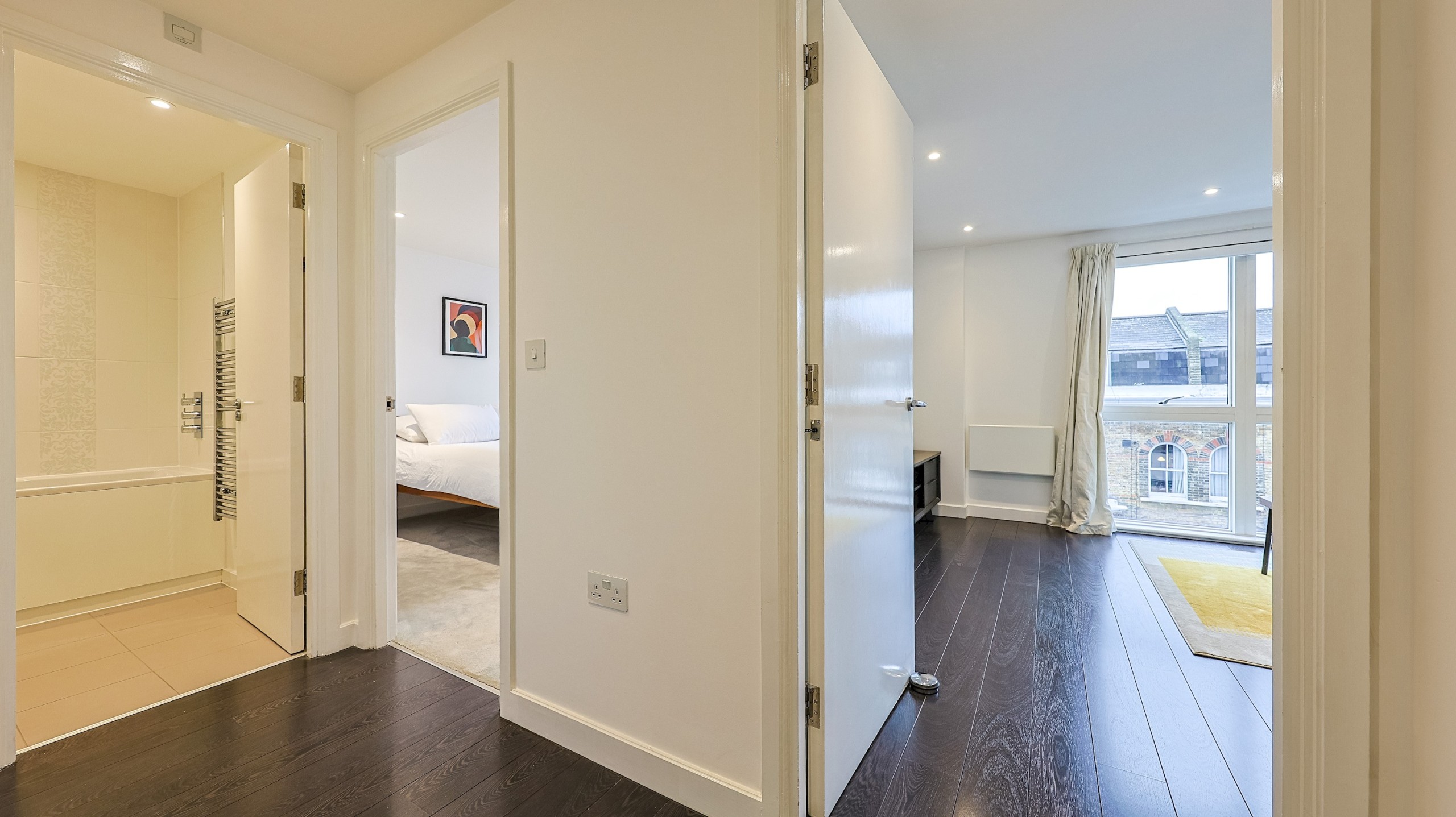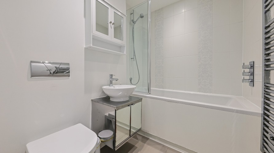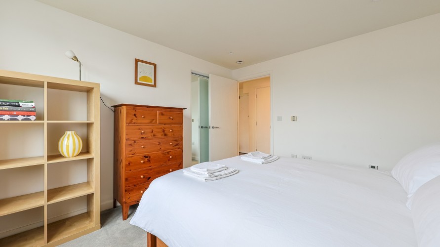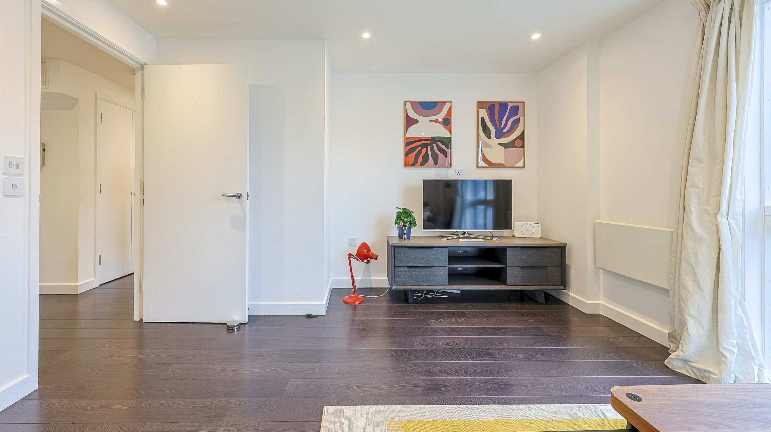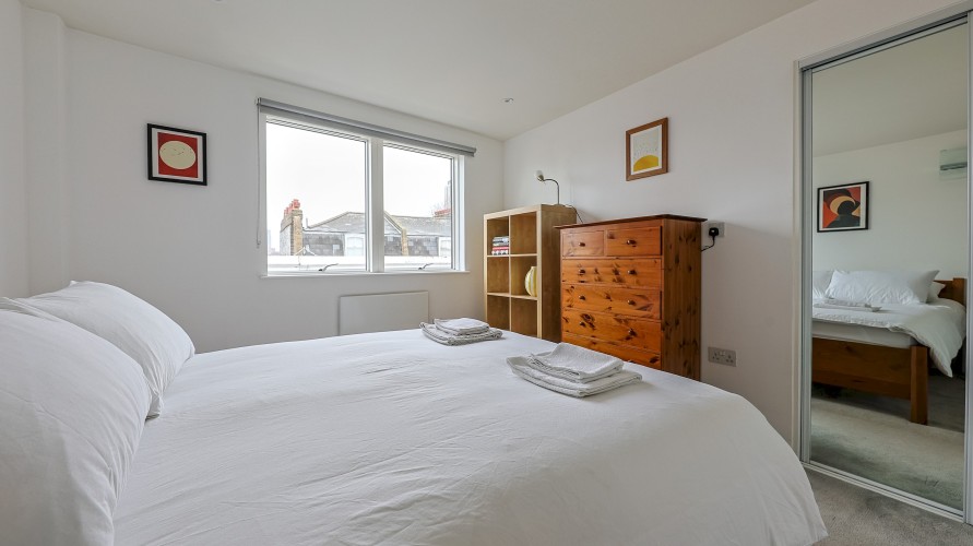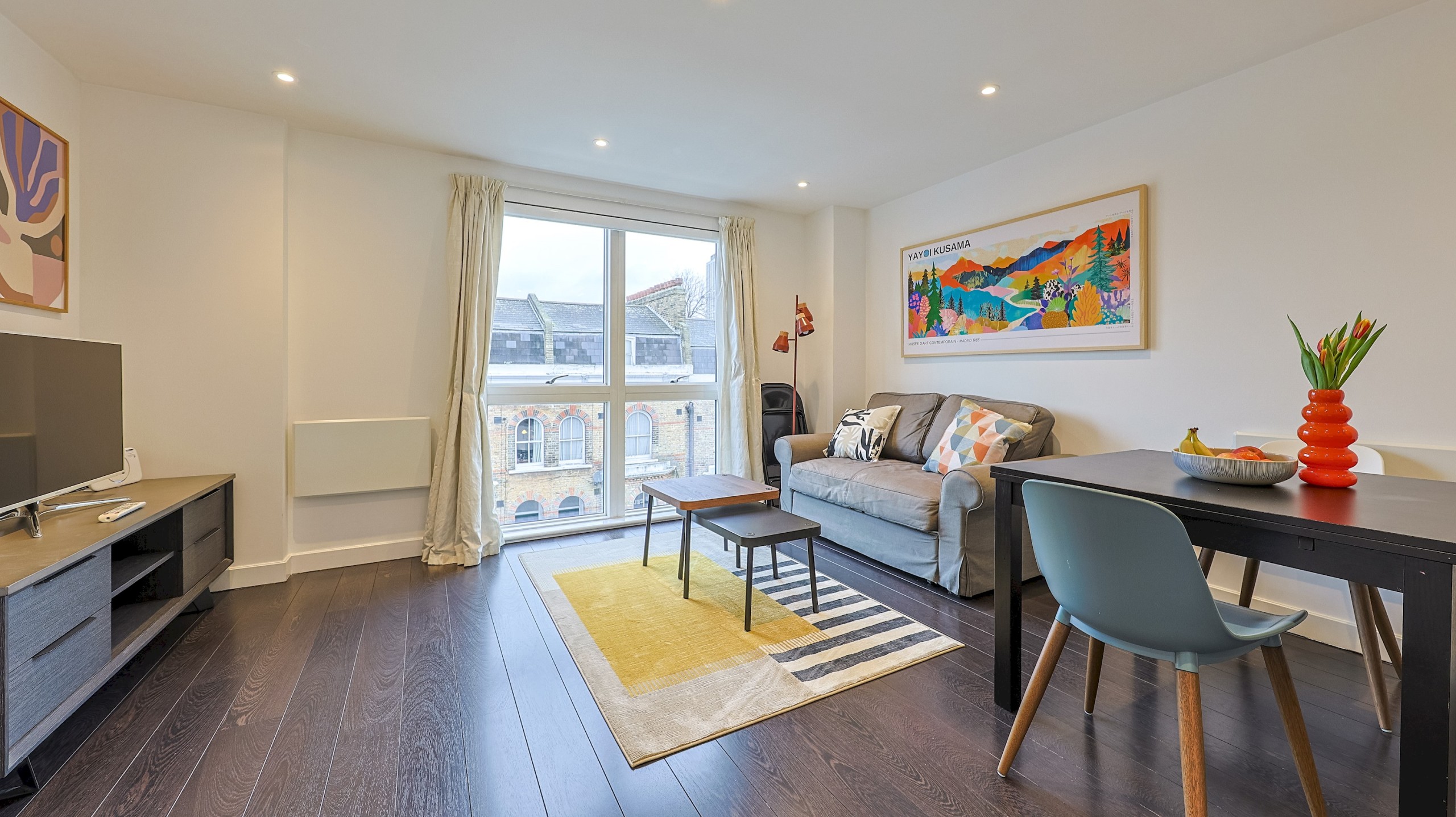 The flat is thoughtfully laid out to make the most of the space, offering a welcoming mix of comfort and practicality. The living area is light and inviting, with a comfortable sofa that converts into a sofa bed, perfect for relaxing after a day in the city. Whether you’re unwinding in the evening or planning your next adventure, the space feels calm and homely.