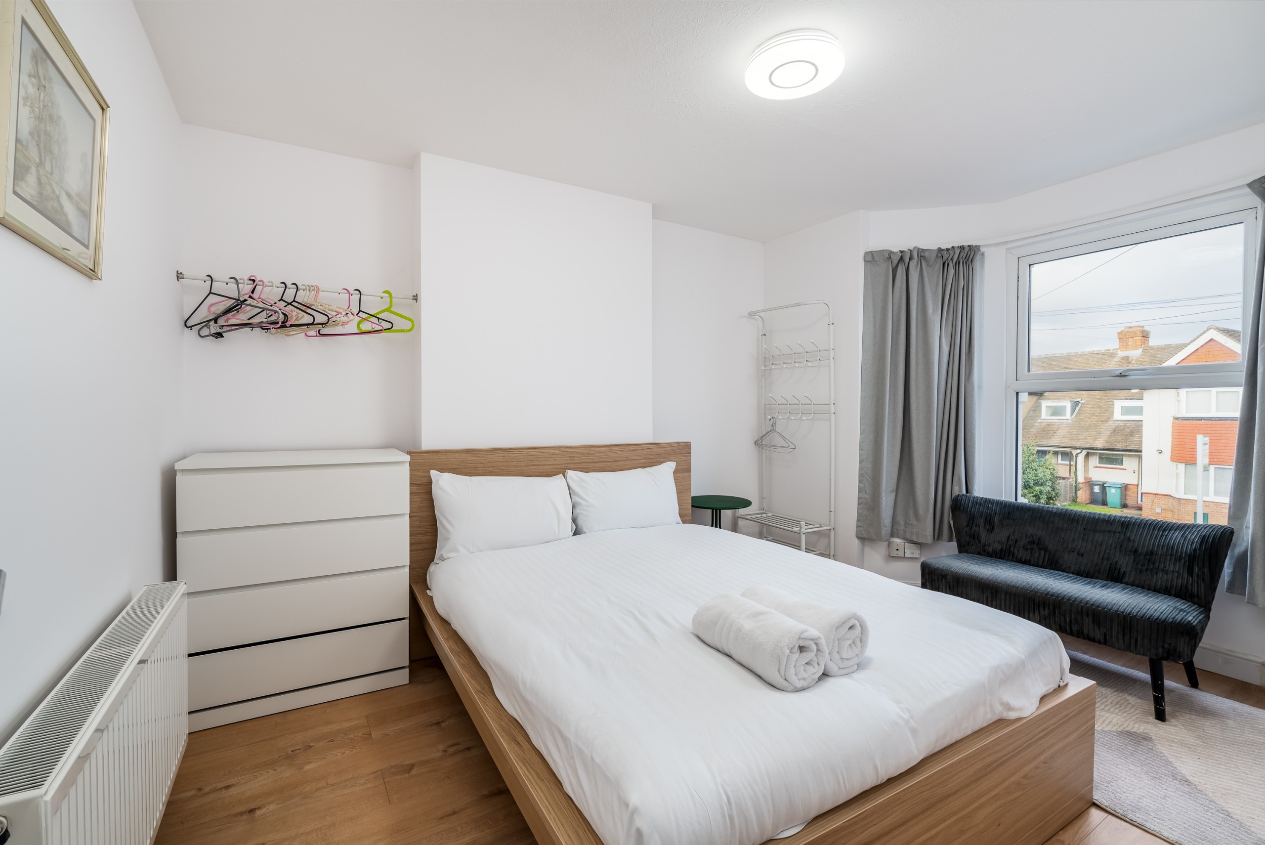 Central, warm 2-bedroom apartment with allocated parking and a convenient location for commuting. Enjoy a full kitchen, cosy sitting area and comfortable bedrooms with ample storage. The bathroom includes a bathtub with shower, shower miniatures provided, and the bedrooms feature hotel premium linen, creating a welcoming base for your stay. Just 35 minutes from central London by train, this apartment offers the perfect blend of convenience and comfort ideal for both work and leisure visits.