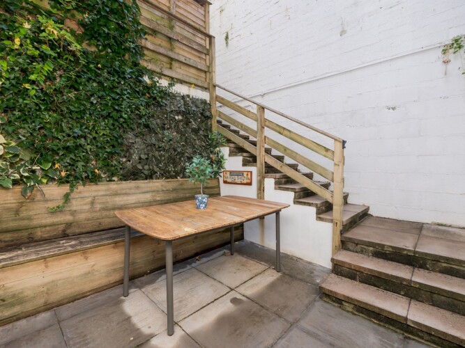 There is a small paved courtyard garden with bench – enough space for alfresco drinks and a barbecue perhaps. This area is very private and not overlooked.