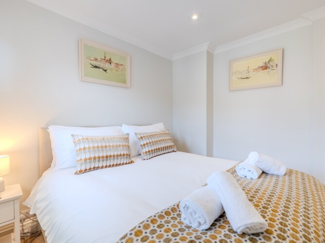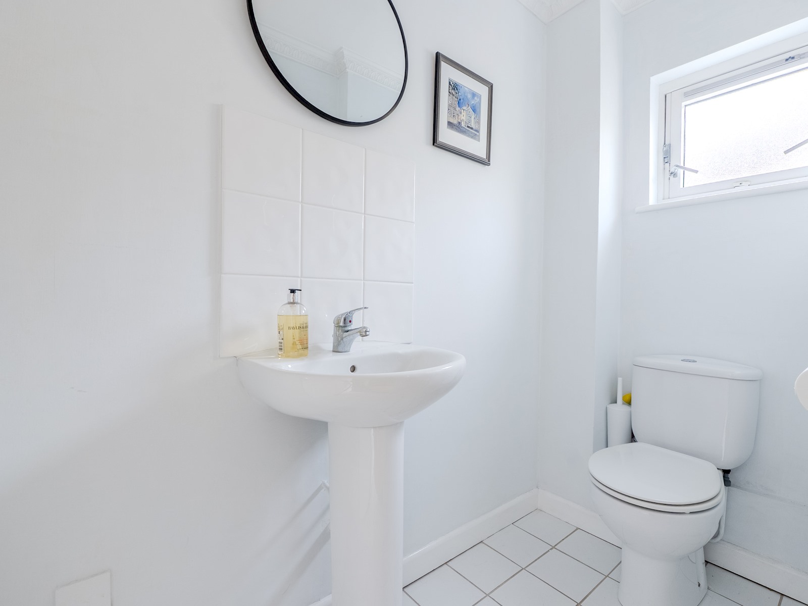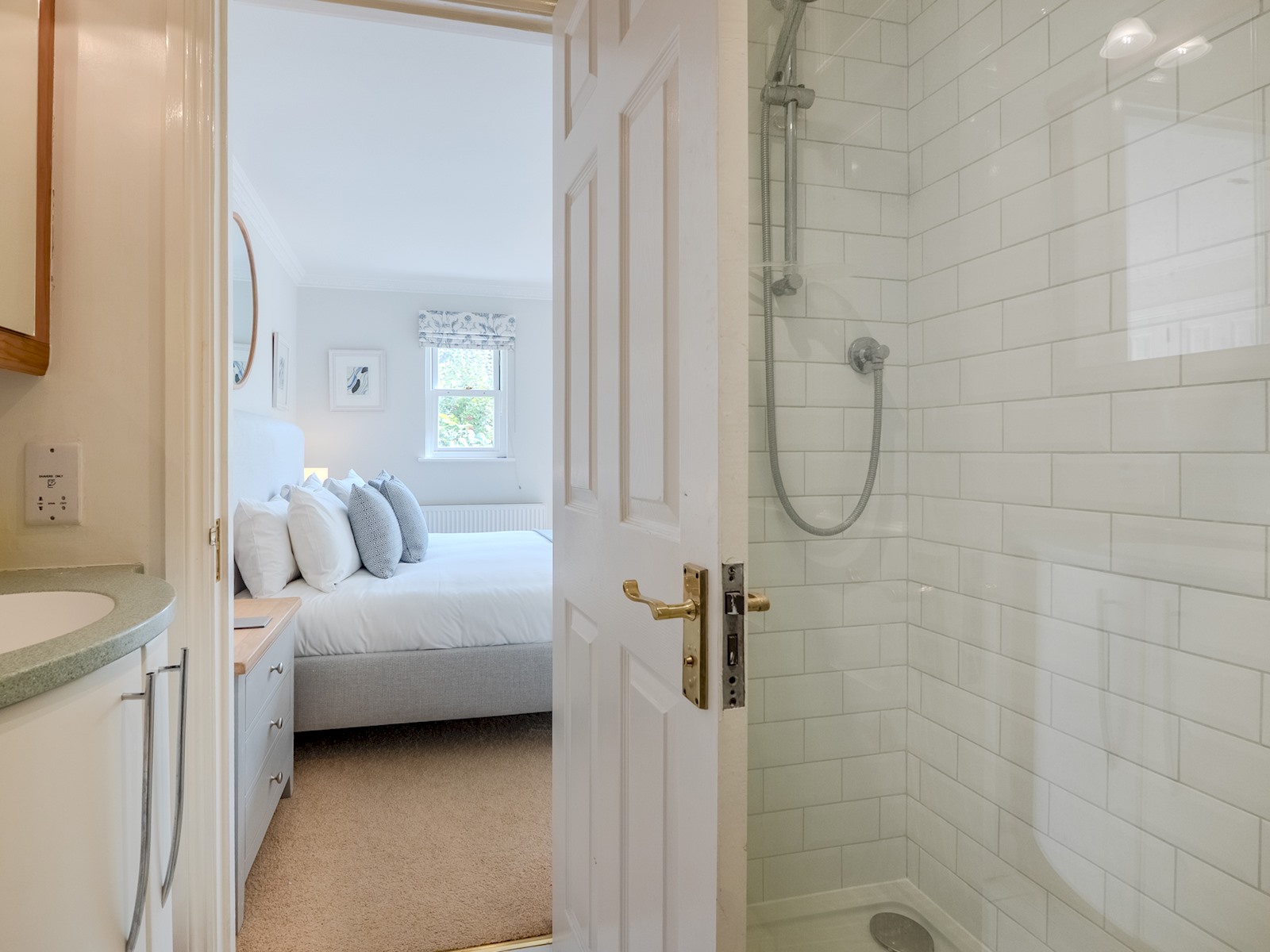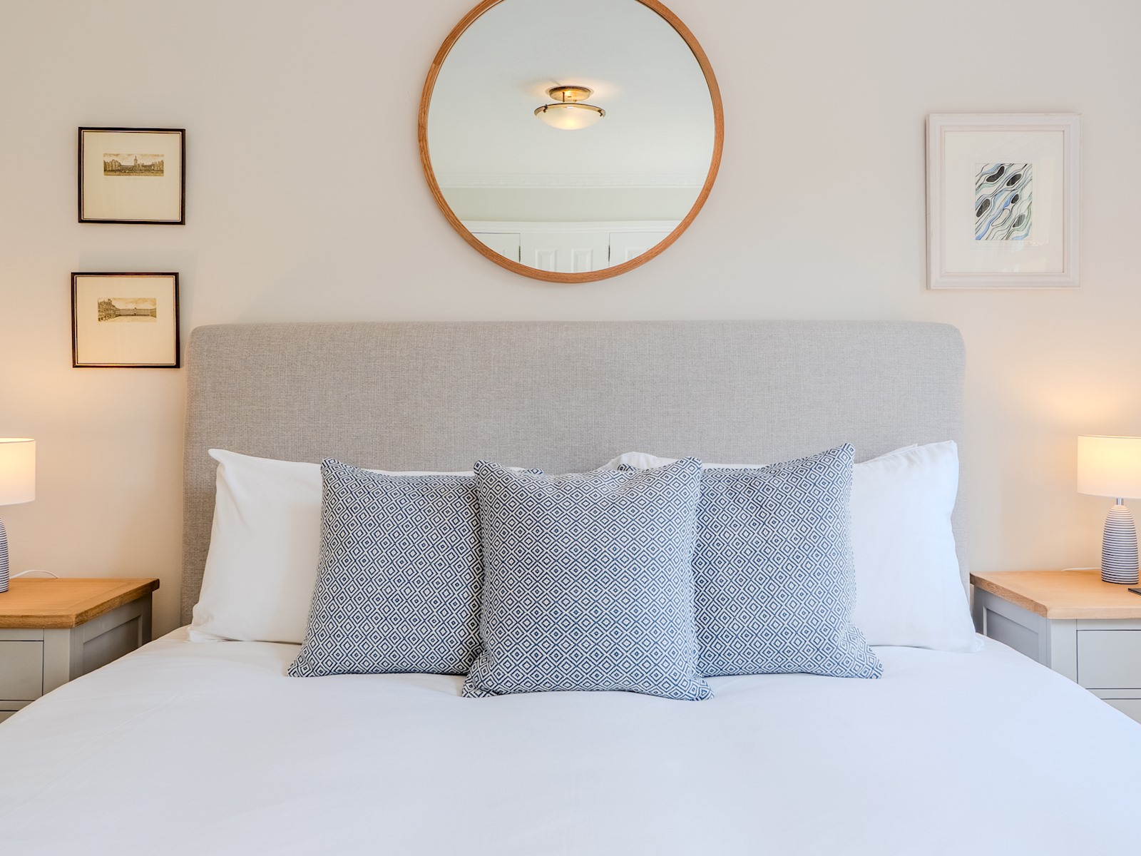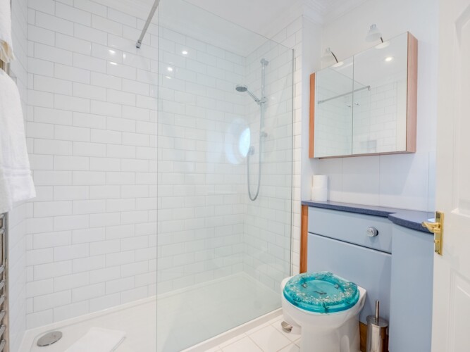The beautifully presented interior is light and modern, with stylish décor throughout. The spacious living area has comfortable seating and dining space, leading on to a separate fully fitted kitchen. There is also a downstairs cloakroom. Upstairs there is a Super King-size bed room and a king size bedroom both with en-suite shower rooms.