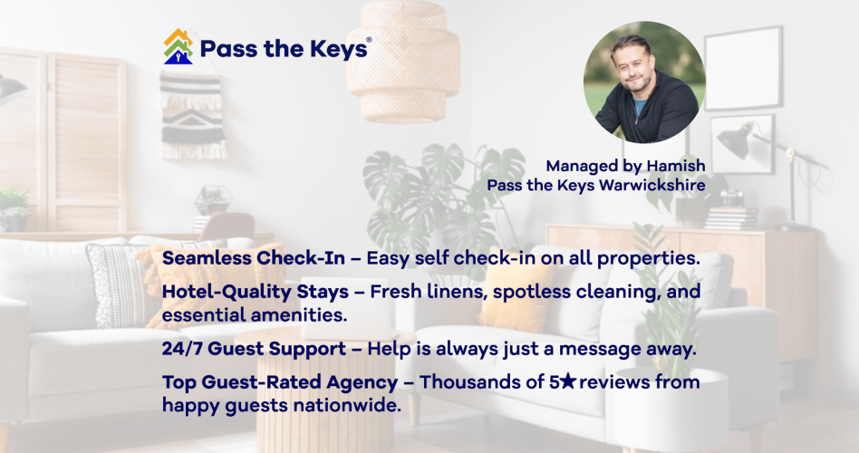 Hi, I’m Hamish, owner of Pass the Keys Warwickshire. I’m passionate about the area where I live, having moved away from London a good few years ago. The beauty of the rolling hills in the North Cotswolds and the history that is plain to see in the ancient towns of Warwick and Stratford upon Avon is amazing, along with the buzzing regency nightlife in Leamington Spa. I was introduced to short-term management capabilities of property through my own renovation work on a couple of my own projects and now I’m keen to share the secrets of my success with other property owners that want increased revenue and more flexibility to use their property whenever they wish. I look forward to continuing to grow Pass the Keys in Warwickshire and offering more spectacular places for anyone to visit, unwind and stay.