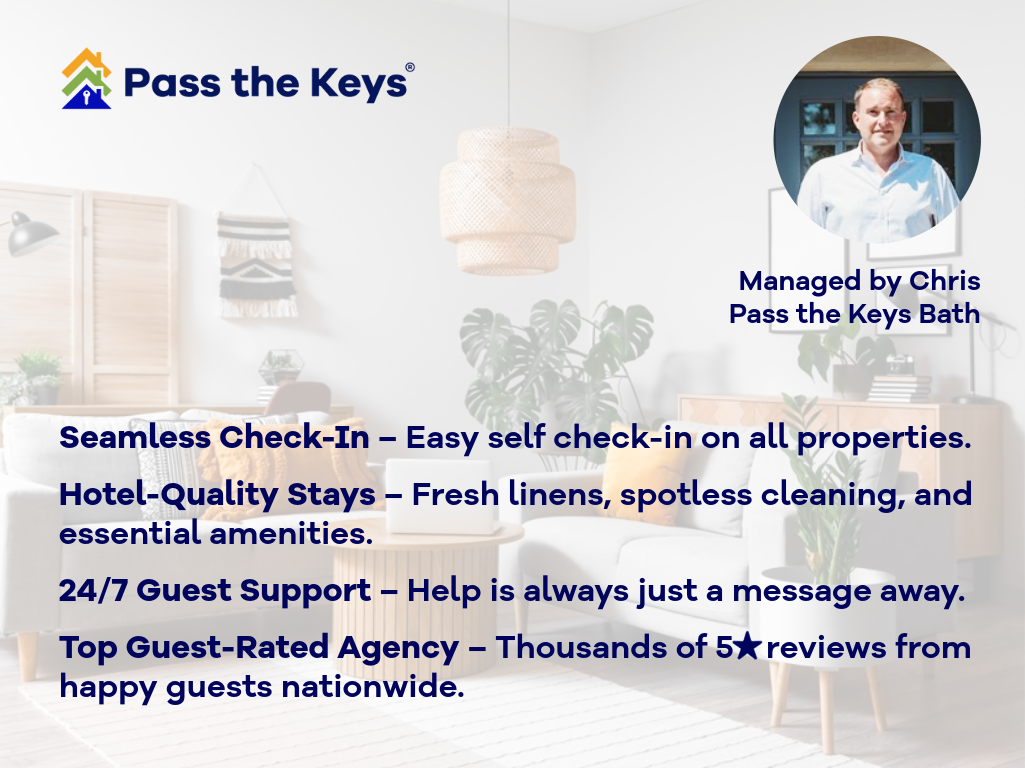 Hello, I’m Chris, owner of Pass the Keys® - Bath and I am passionate about delivering exceptional customer service for both hosts and guests. I have been working in the hospitality industry for over twenty years, and have been managing hotels in Bath since I moved here with my family four years ago. Having managed high-end boutique hotels No.15 Great Pulteney and The Bird, I know that occupancy levels for accommodation in Bath are very high, and want to offer hosts the potential to maximise their short let rental income without the hassle.