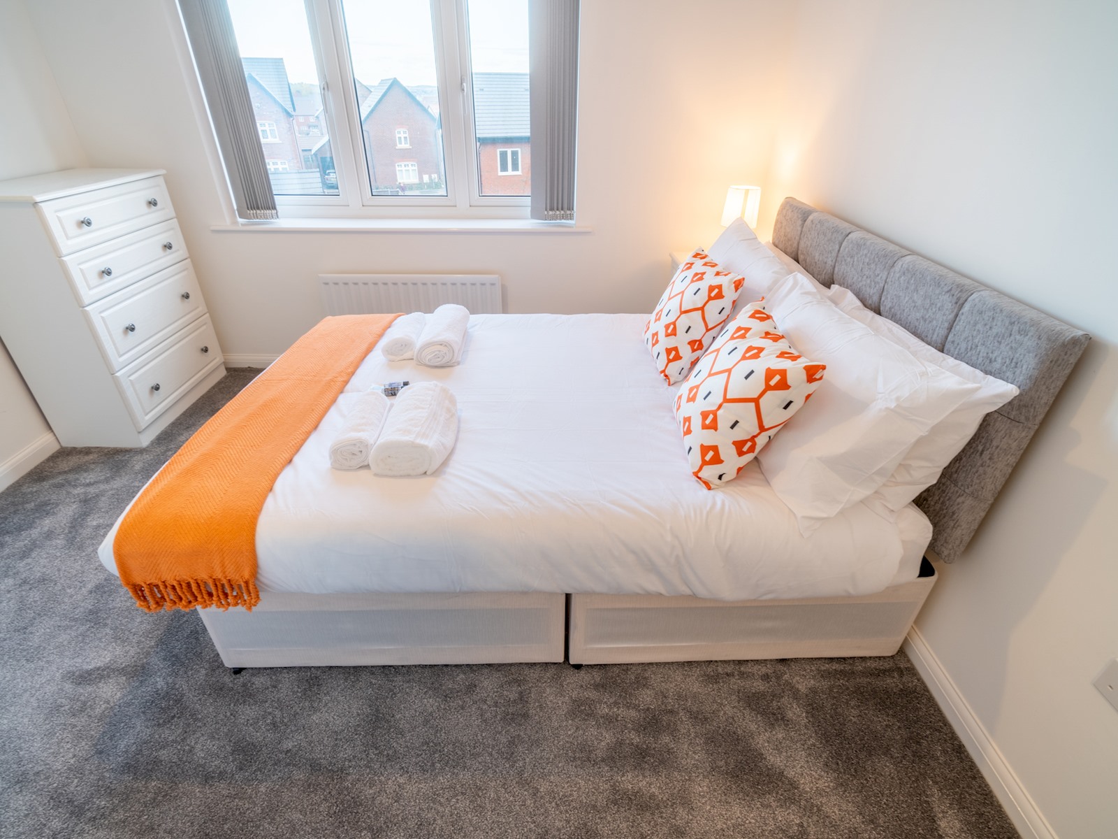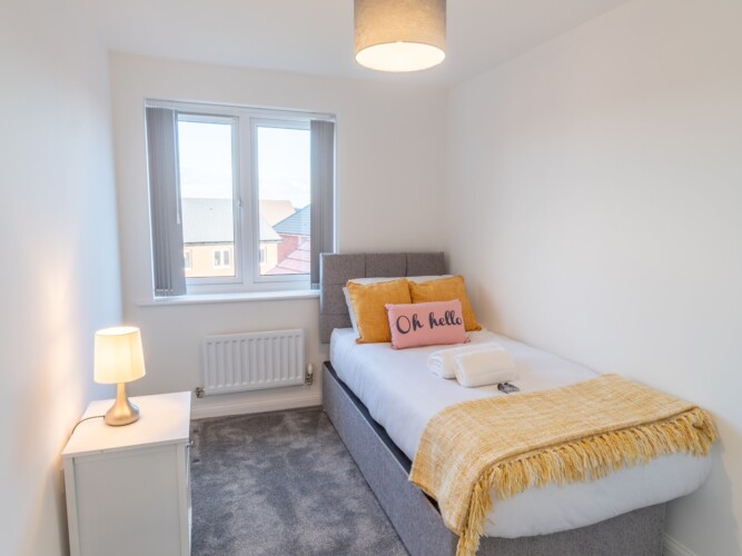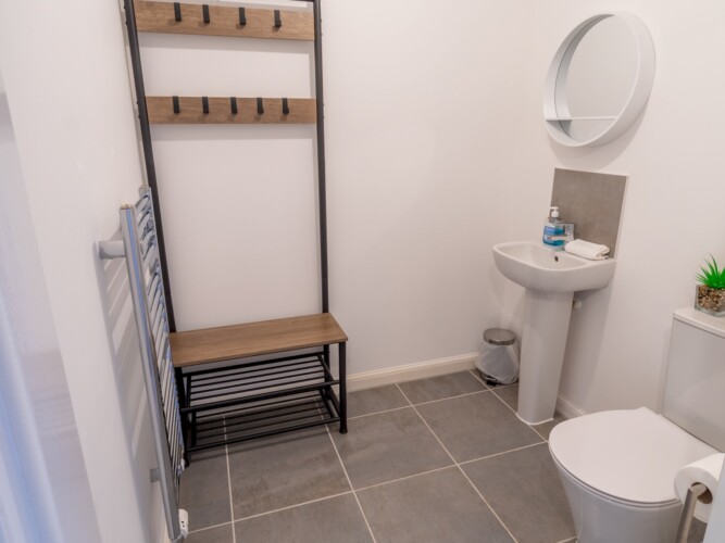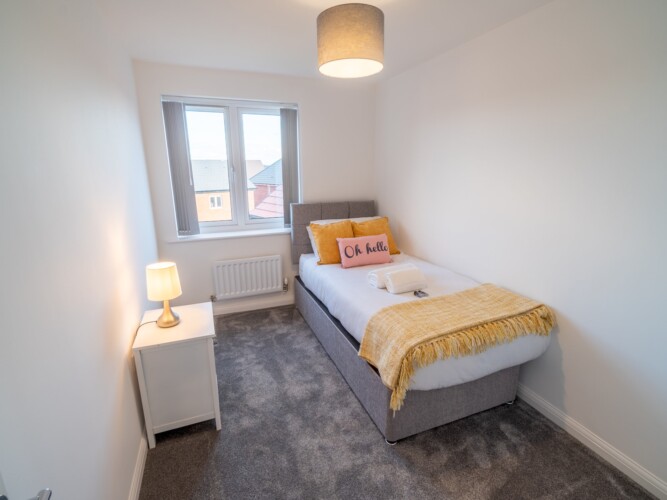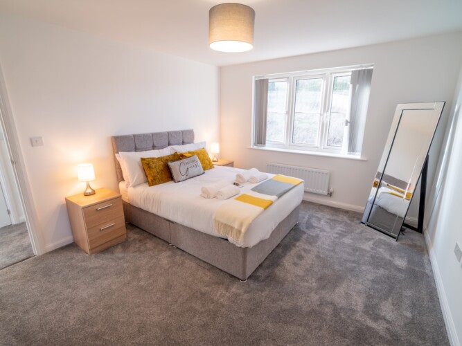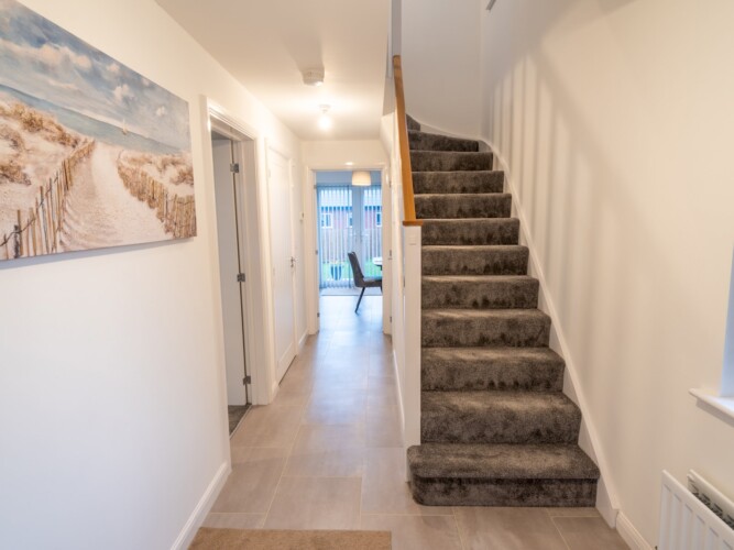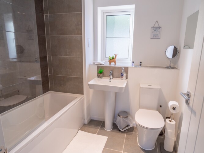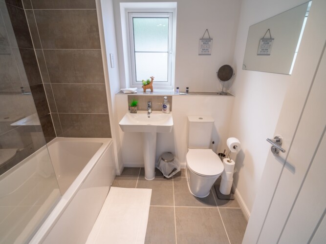This stylish and beautifully furnished new-build home is perfect for families or groups of friends, offering comfort and convenience for your stay. With space to accommodate up to five guests, the property includes two double bedrooms, one single bedroom, and two bathrooms – a family bathroom with a combined shower/bath and an ensuite shower room in the master bedroom.