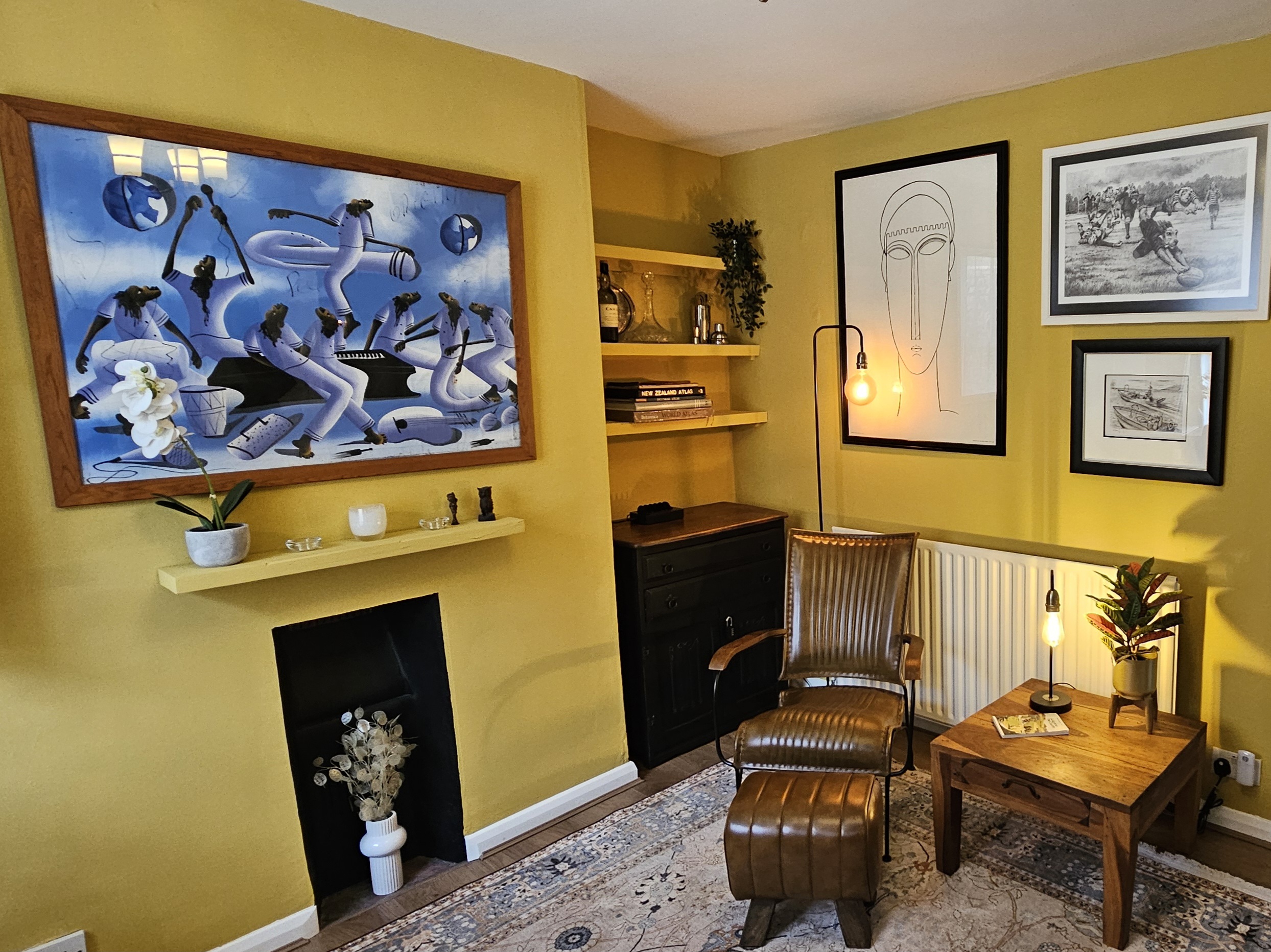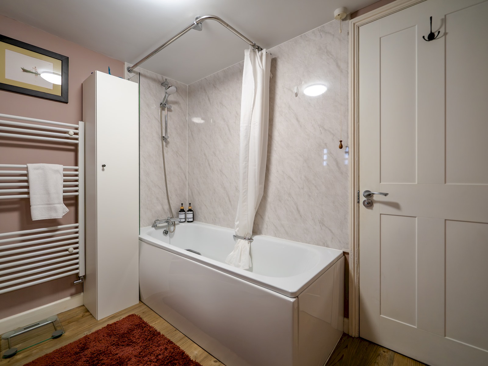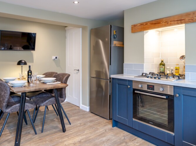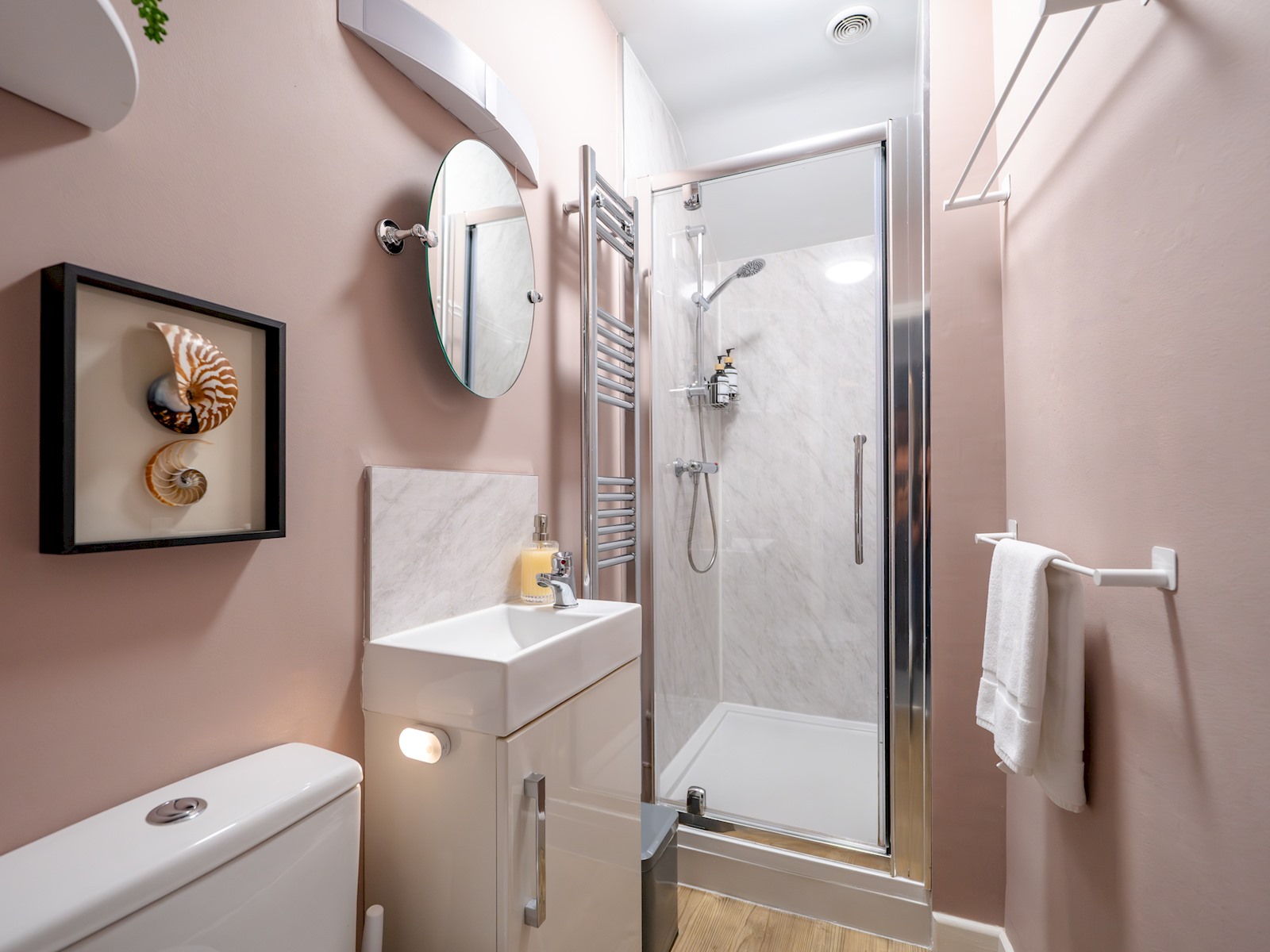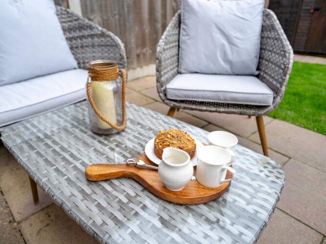 Set over three floors, the house combines character and comfort. On the first floor, you’ll find a cosy sitting room with a Smart TV, perfect for relaxing after a day exploring. Downstairs, there’s a bright kitchen and dining area with all the main appliances you’ll need for your stay. Patio doors lead out to a small garden with outdoor seating, ideal for a morning coffee or evening glass of wine. The main bathroom is also on this level, featuring a bath with shower over.