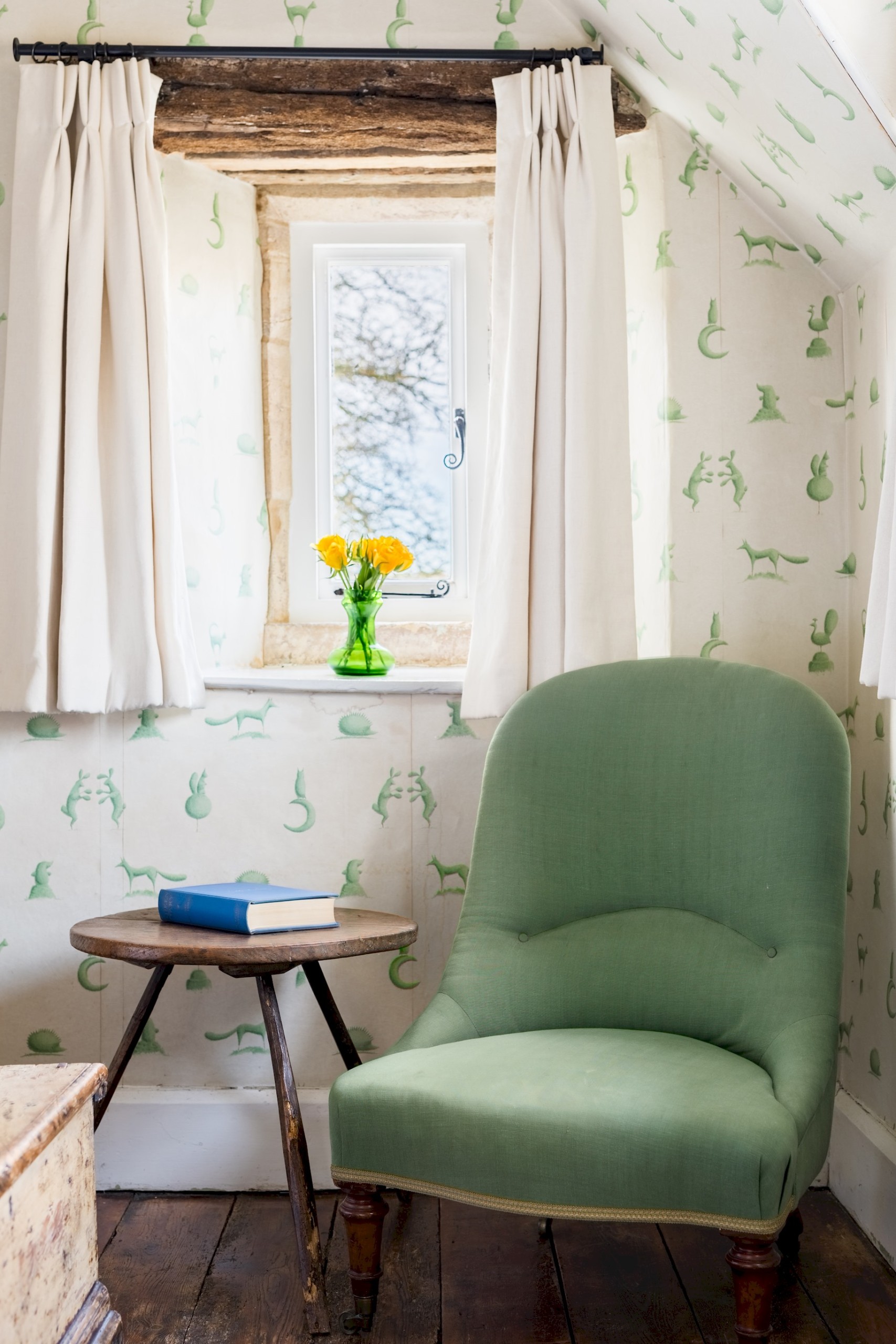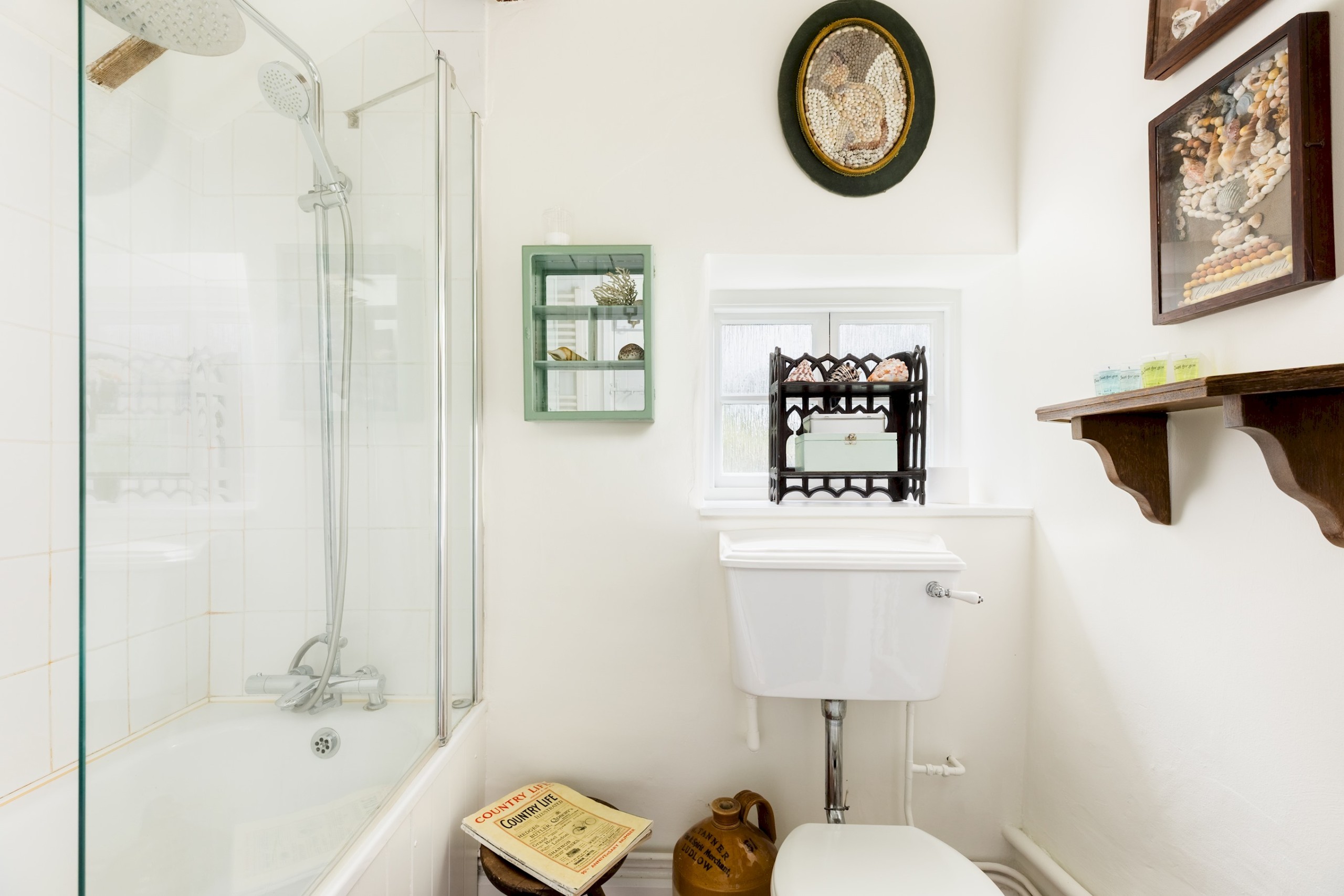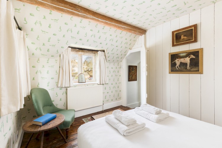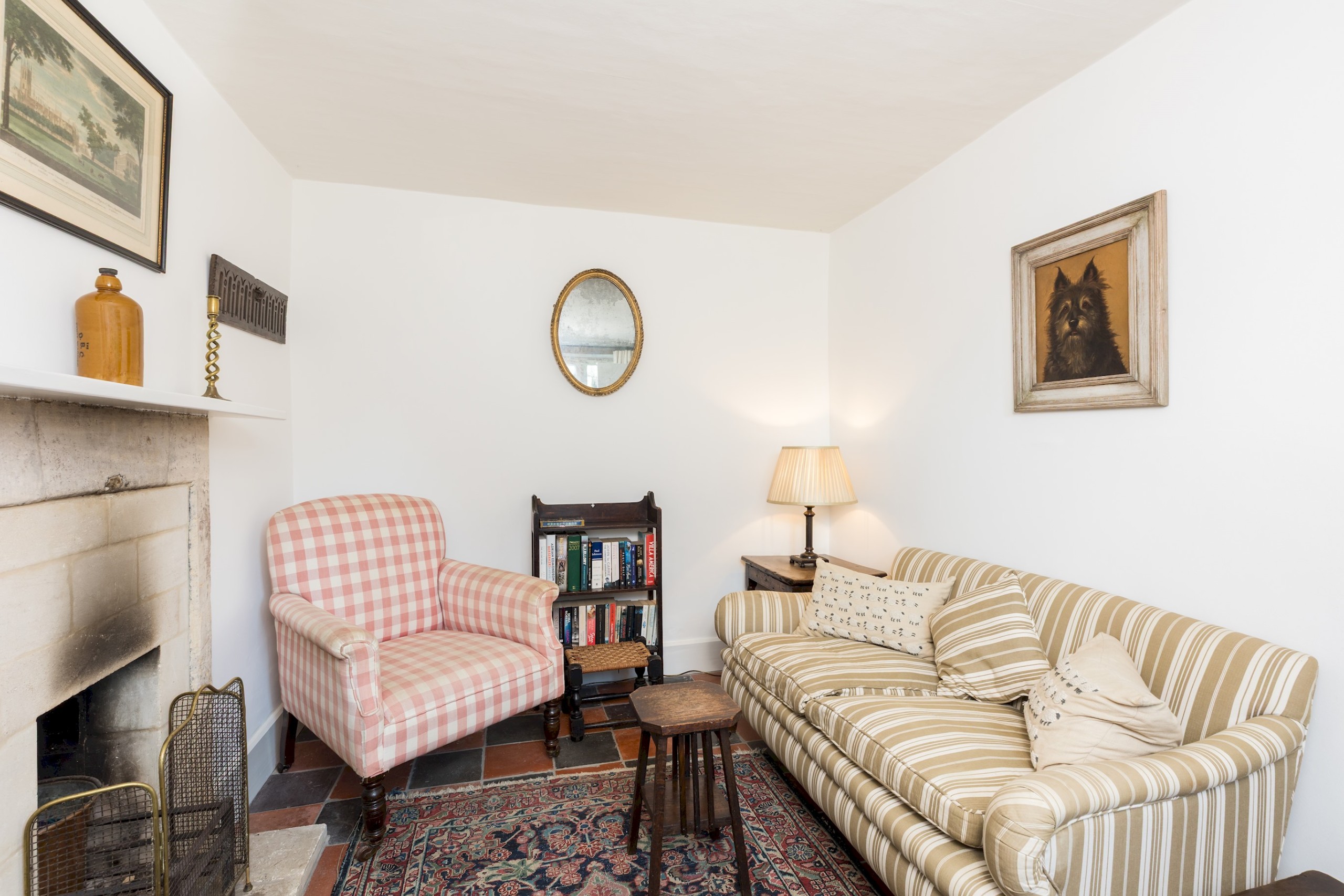 Duck your head as you open the old front door! On your right is a tiny dining room with a fireplace and a little round table. Continue through to the well-equipped galley kitchen to put the kettle on. Make your way back through the dining room around to the cozy sitting room where you can settle into an easy chair to read.