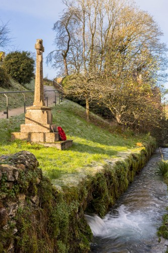Riverside Cottage sits just a few steps from the “crocodile” water spout along the lane bordered by the little stream of spring water that flows under the cottage doorstep.
