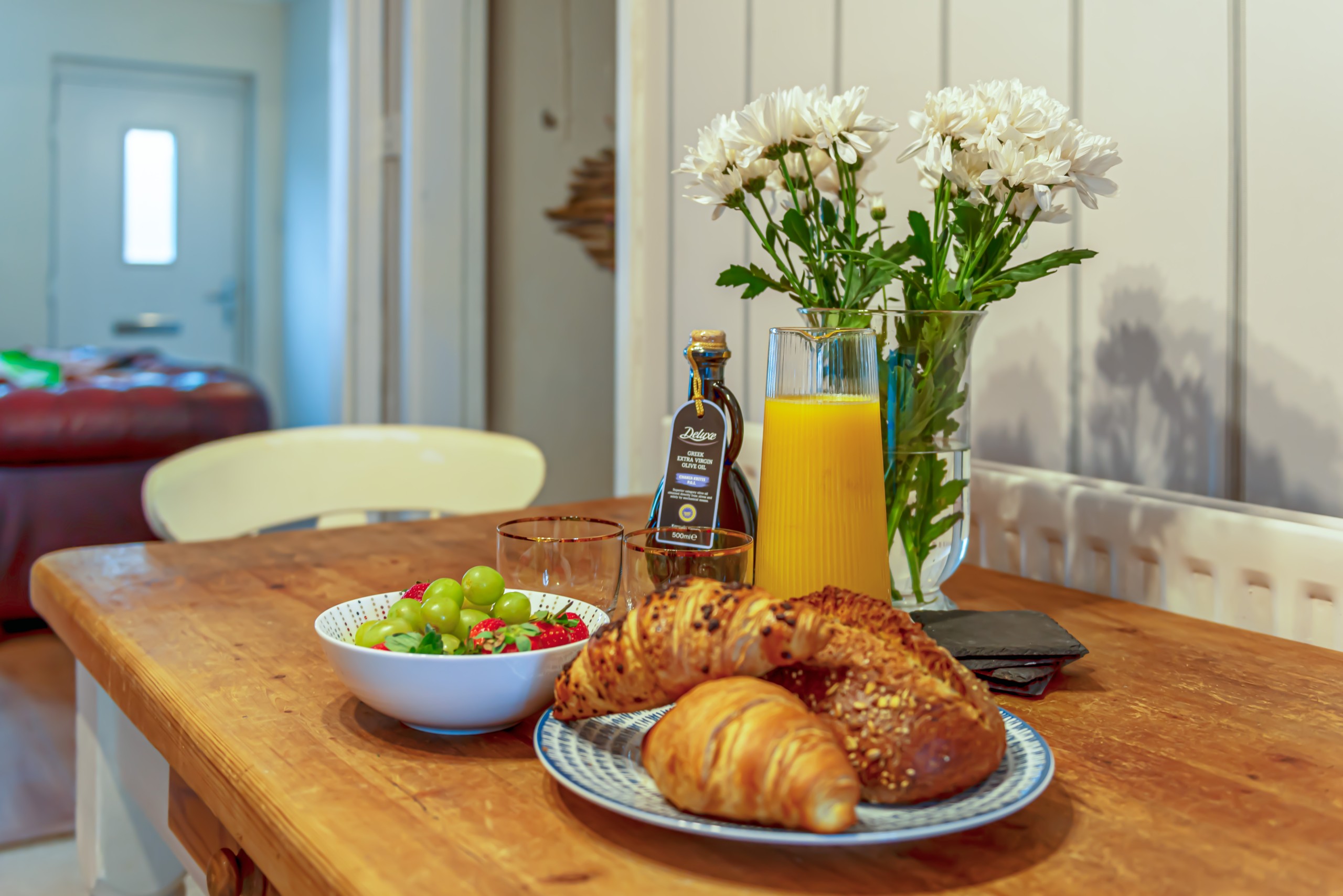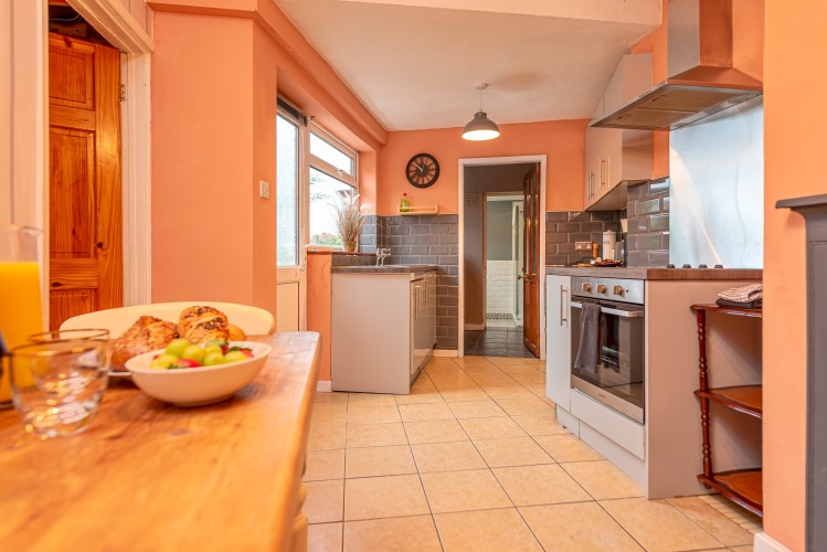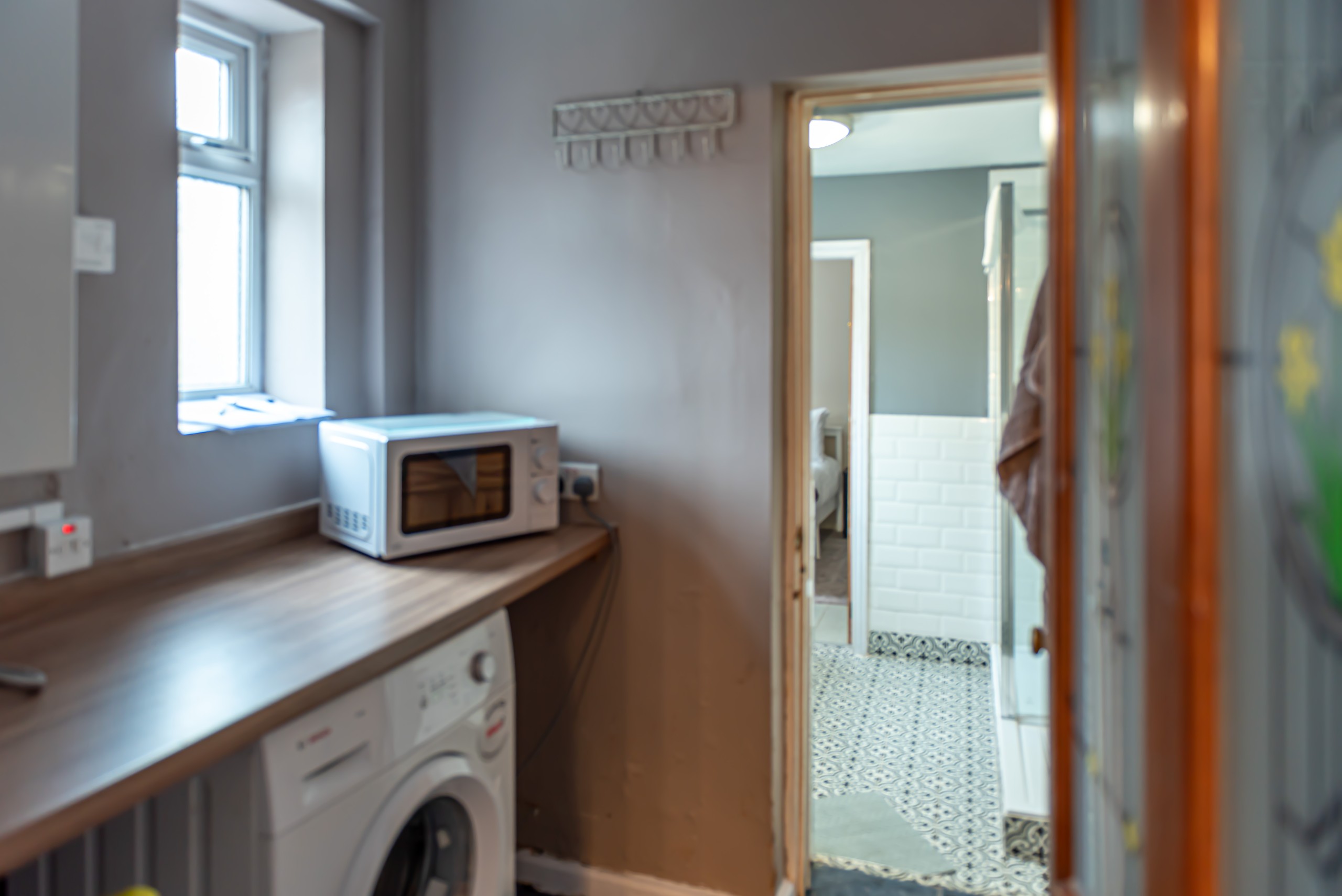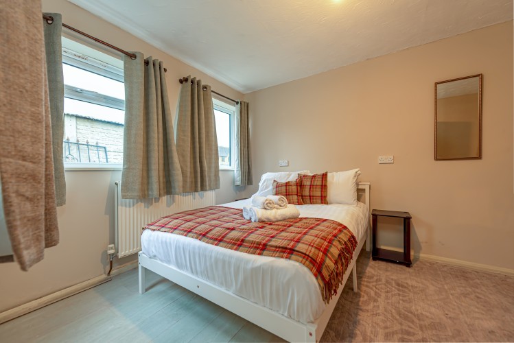 The home offers a comfortable living area, perfect for unwinding with a film or catching up with family. The fully equipped kitchen and dining space make cooking easy – whether it’s breakfast before a busy day or a cosy night-in meal. A clean and modern bathroom completes the space.