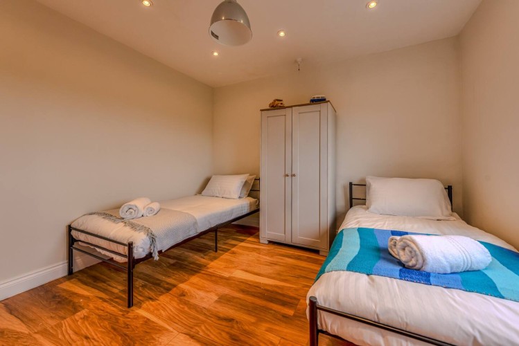 Carry on upstairs to the 3 spacious bedrooms with amazing countryside views from dual-aspect windows in the master bedroom, which has a king-size bed and plenty of storage in the large wardrobes. There is also a twin bedded room with storage and a baby changing unit and a Double room with a double bed, again with plenty of storage. All beds have freshly laundered hotel-quality linen
